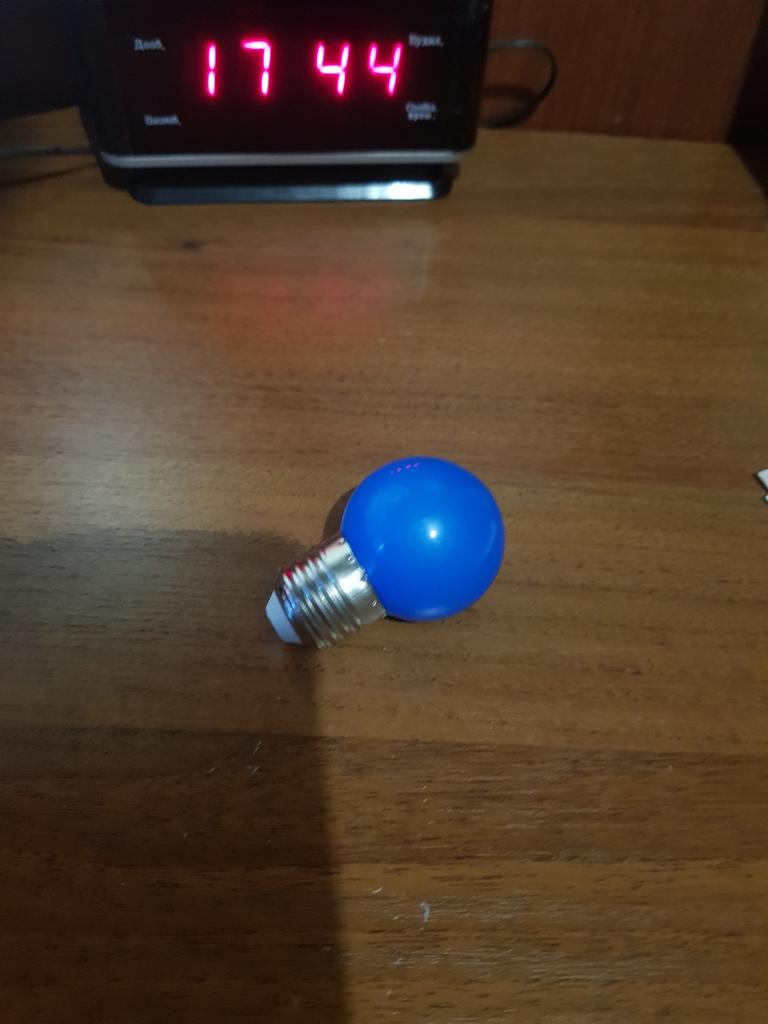 Nice mini bulb. Various colors were offered. I chose cold white light specifically for illumination at night. The size can be seen in the photo in comparison with the fingers of the hand.