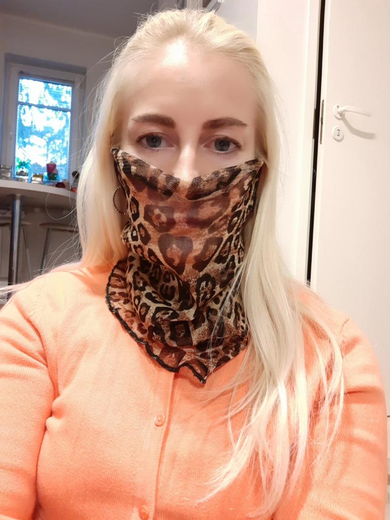 The material is silky soft goes right up your face and attaches to you ears perfect for on the bike love it