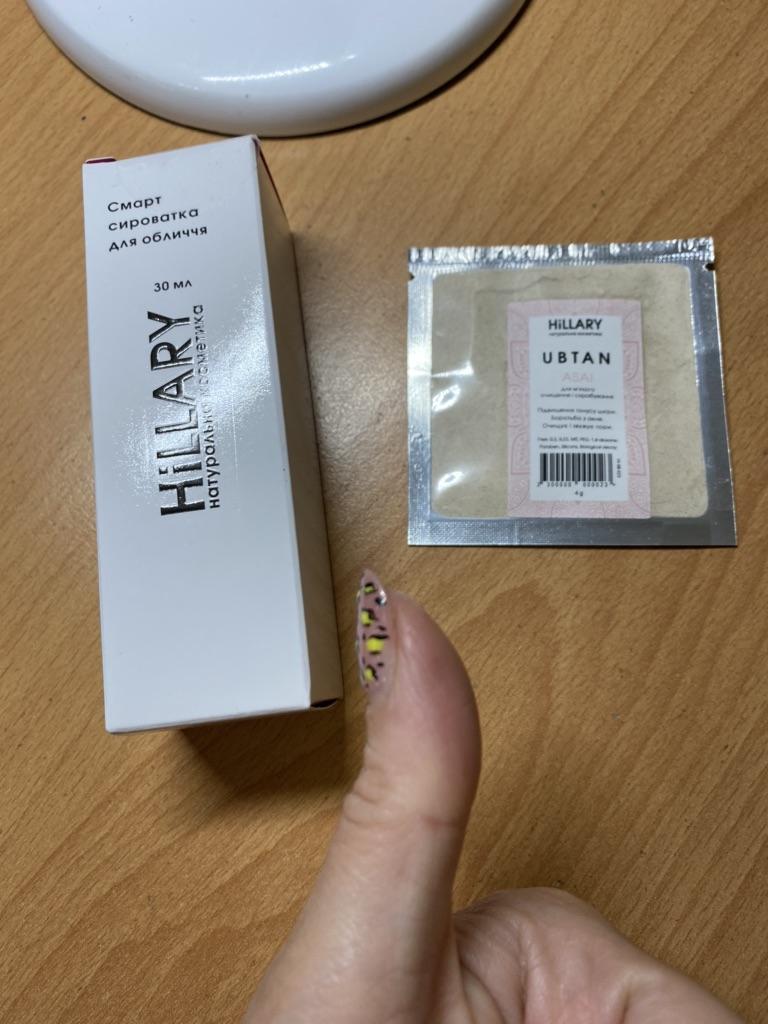 🖤Smart serum for deep skin hydration 🖤 🖤The serum has an excellent composition, which includes natural components from plant raw materials, the main action of which is aimed at moisturizing and maintaining the moisture level. 🖤It is interesting that Aloe Barbadensis juice is in the third place in the composition, so the product can be used for effective care with beauty gadgets (microcurrents, iontophoresis, etc.) 🥰 🖤The components have ECOSERT or COSMOS international certification, which proves that they are safe and useful for humans and do not harm nature. And in general, the Hillary brand follows ecological principles, does not test products on animals. 🖤 Bottle with serum with a capacity of 30 ml. The aroma is specific, perfumed, for an amateur, let's say. But my skin really likes the product - it becomes soft and gentle. I think this is love for years 😍 🖤In addition to the serum, I was sent a sampler of ubtan and a sanitizer with an extremely pleasant aroma as a gift. Thank you! ☺️ Delivery is about a week by Ukrposhta. I recommend the brand and the serum.
