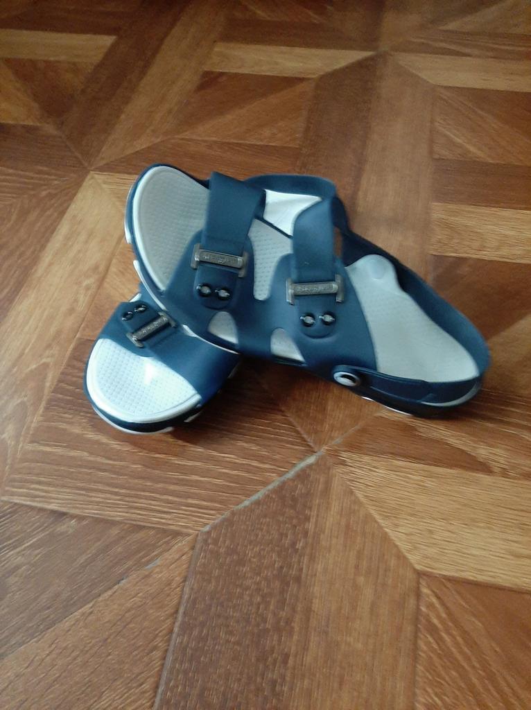The sandals are completely plastic, not what I expected. They are not adjustable to the foot, as is. Size 44 fits 43.