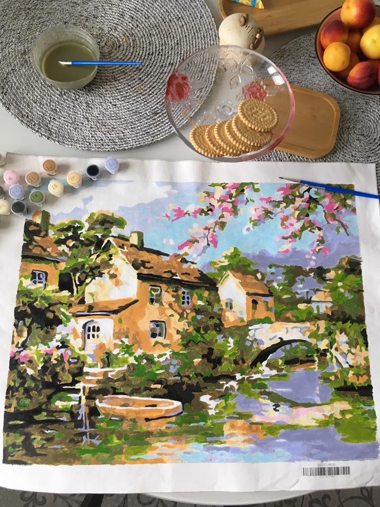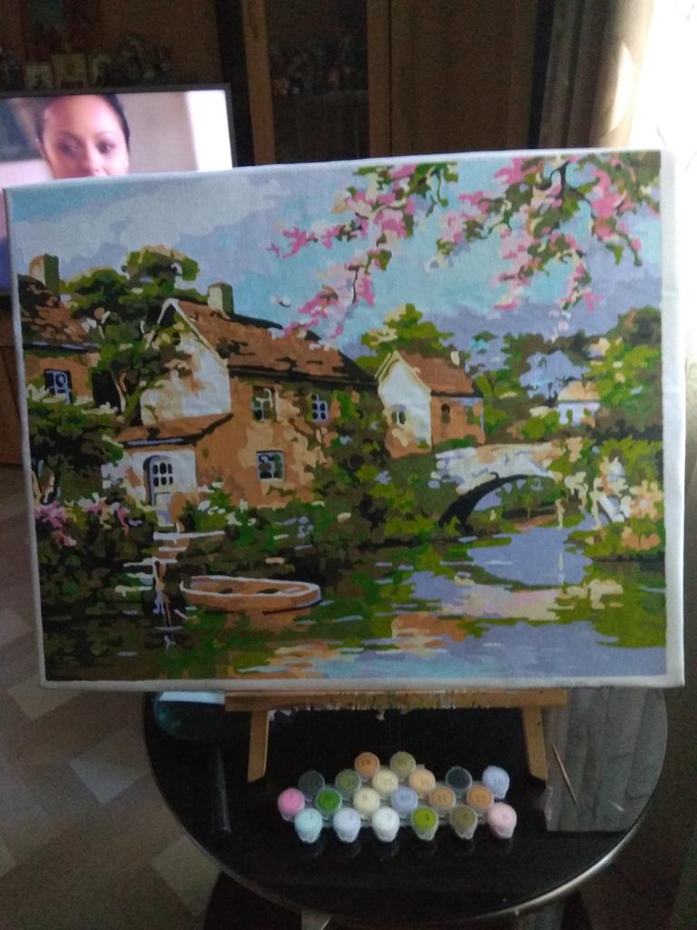 Paints of such mediocre quality. Some are too thin, some too thick. The lines of the picture are not clear everywhere. But my mother liked it as a gift. The result is different, the main thing is to try. For the first time, exactly what is needed