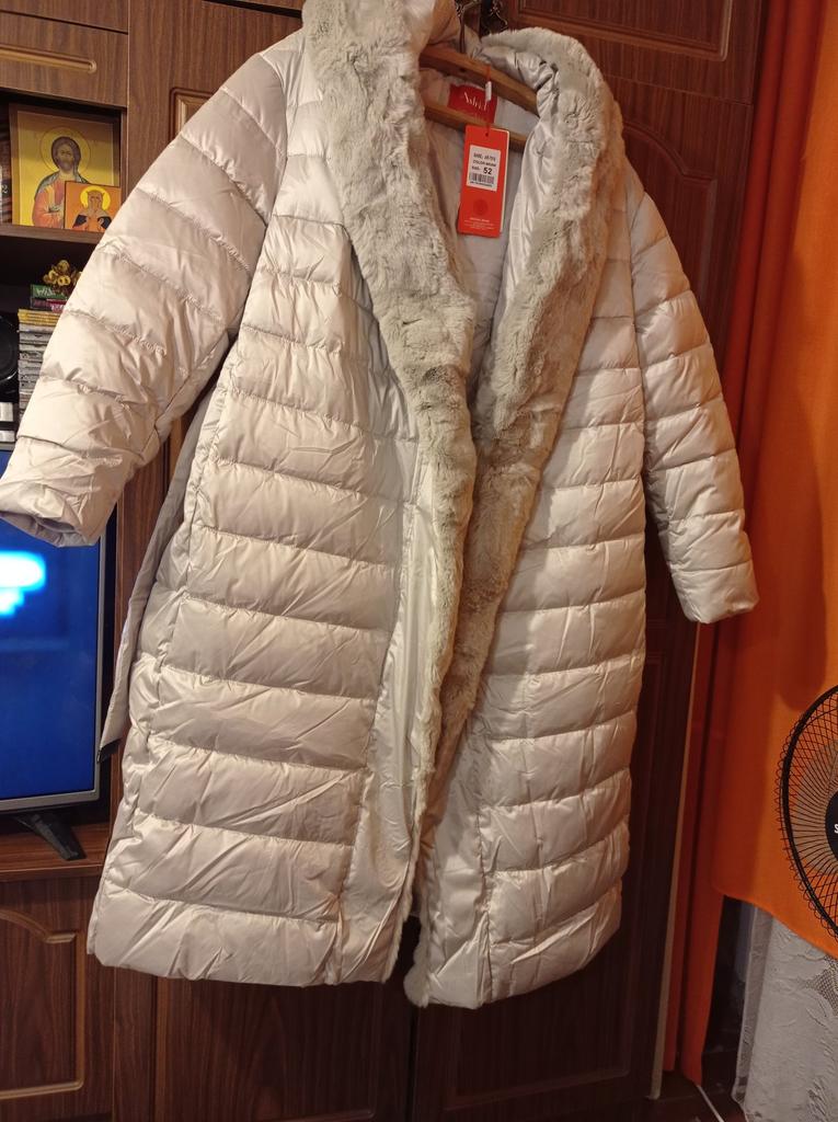 The coat is beautiful and high-quality. But the indicated size grid for size S is critically not true, the coat is very small, actually xs or xxs. There is no 135 in the chest, not even 90... I wrote to the support service, I expect a refund... The color is not gray, but beige I had to destroy the product and get a full refund... It's a shame. The down jacket is made of high quality. It has a double fabric, first dense white, then a beige balloon on top. The fluff is not natural rabbit. Some kind of strange fur. It looks like natural but on artificial fabric I don't know how I cut it all and the whole house was in the filler balls of a material similar to synthetic winterizer and in fluff because... It is very psychologically difficult to cut a good quality thing... But I had no choice, how could I return it to some representative in Ukraine, I would gladly return it... I see that the manufacturer has not changed the measurements. I would gladly order a larger one but I have no idea how because if you look at the entire size chart, the measurements of S, M and L are almost the same... Intuitively it seems to me that two sizes larger would be ok... But there is nothing to rely on, no guarantees that the measurements match. In my opinion, S corresponds to a 34 European size...