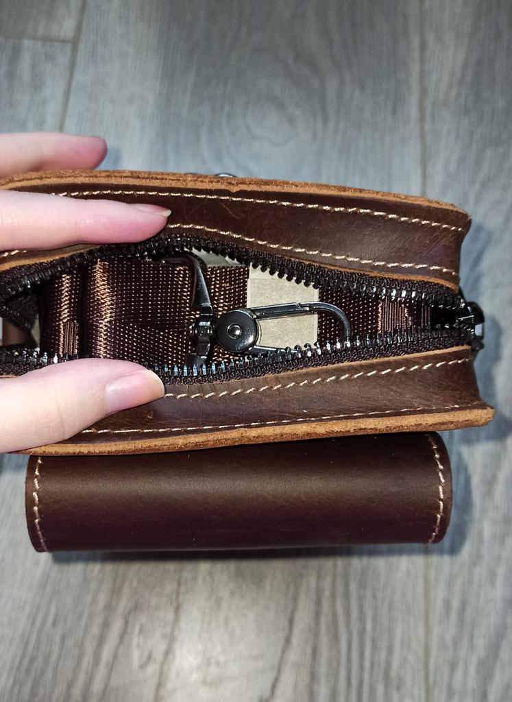 Excellent purse, leather, even tailoring. I recommend!!! Cool bag. Offset.
