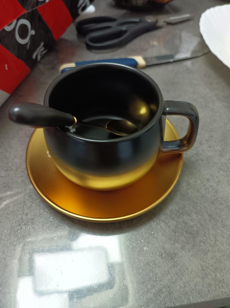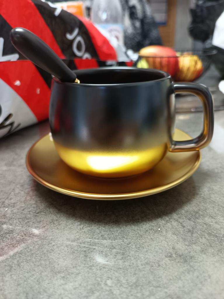 Ceramic Light Luxury Simple Matte Black Gold Champagne Coffee Cup with Saucer Spoon Set Unique Travel Couple Teacup Milk Mug