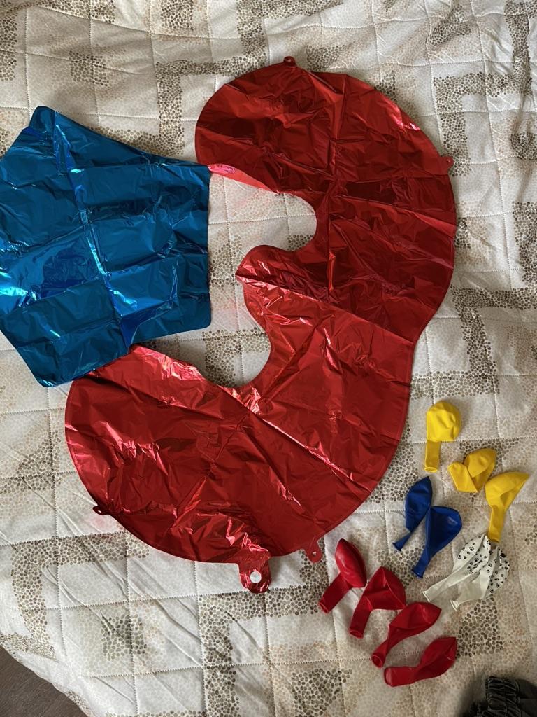 Mediocre quality. Went to the Kyiv region for 2 months, came after my birthday. Packed simply in a small postal bag, the balls themselves were not even put in the bag. Carefully cut the package, you can damage the balls. The balls themselves smell terribly of rubber and are dirty, in dust. 1 number, 1 star, 4 red balls, 2 yellow, 2 blue, 2 white with paws arrived. They did not inflate, it is no longer relevant.