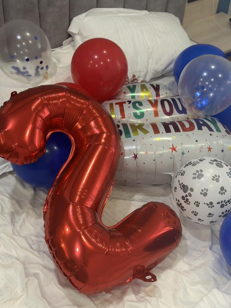 The white balloons are without paw print and the #3 was broken. Never again.