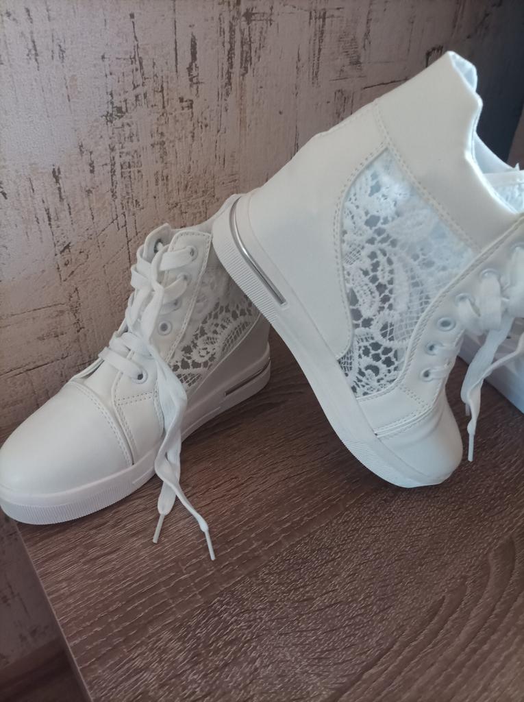 Lace Hollow Out Women Wedge Shoes Thick Bottom Casual Shoes Summer Boots White Shoes