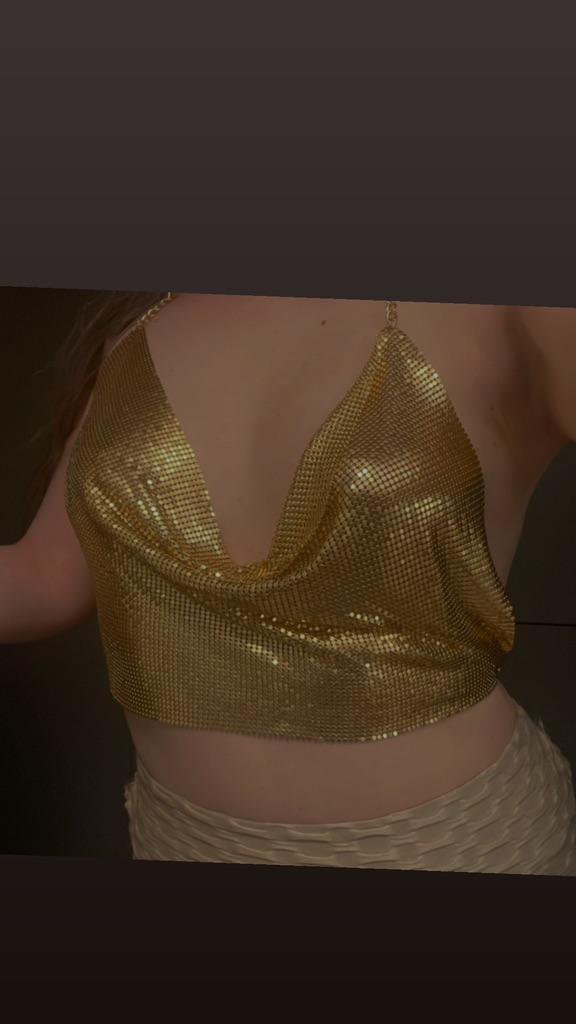 🌟🌟🌟BODYCHAIN TOP🌟🌟🌟 It's amazing ❤️❤️❤️❤️❤️ Pure love!!! I ADORE!!! It is good to make it clear immediately that I love this article: glamorous, trendy and a must have !!! ✨💫✨✨I am fully satisfied with the top I will wear under a shirt or jacket. The upper part is adjustable thanks to a chain in the back. The top is available in gold, black and silver 😍 ✨💫✨💫The manufacturer does not indicate the metal of which the chain is made. I hope it doesn't get too dark. ✨💫✨💫✨ Delivery took two weeks to arrive in excellent condition and without any unpleasant odors 📦🚚 CONCLUSION🎉 I absolutely recommend