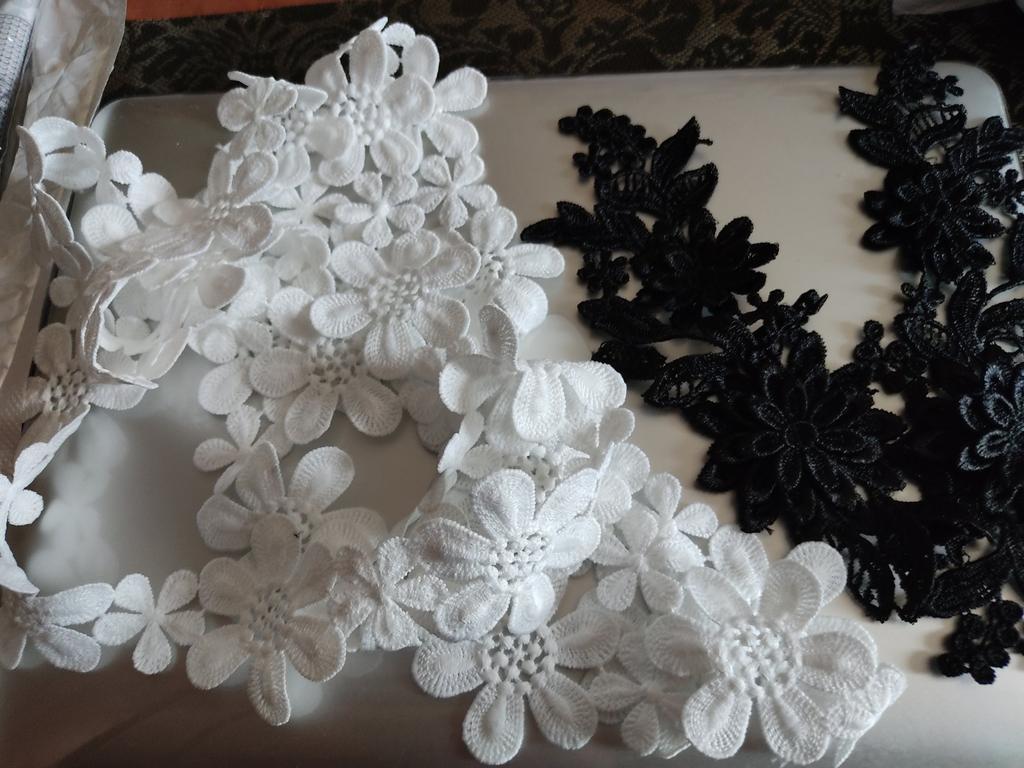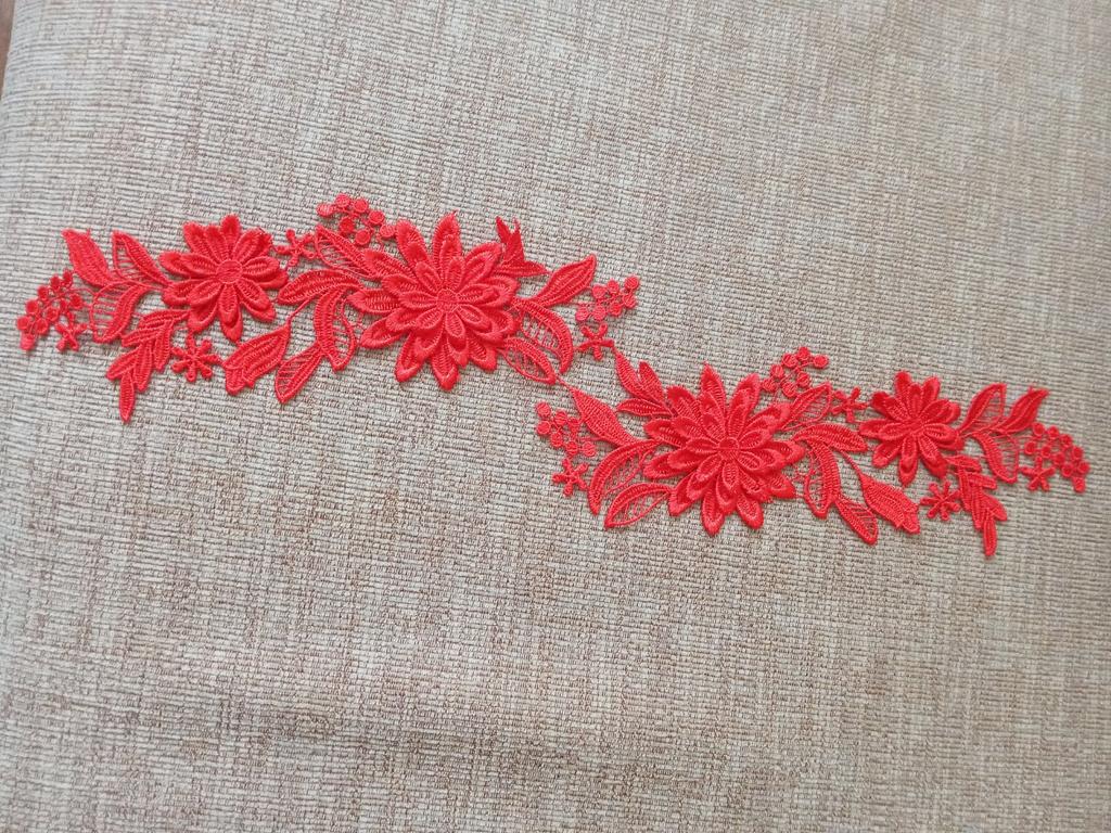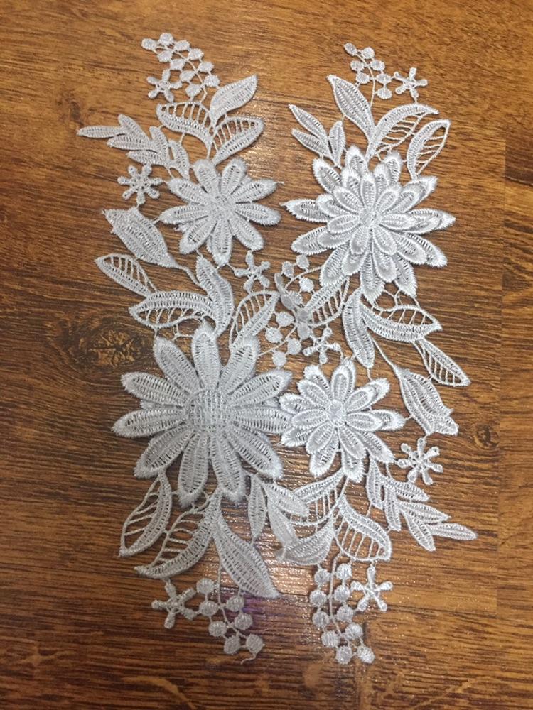 2pcs 3D Flower Floral Embroidery Lace Applique Trim For Evening Skirt Clothes Lace Collar Decoration Sewing On Accessories