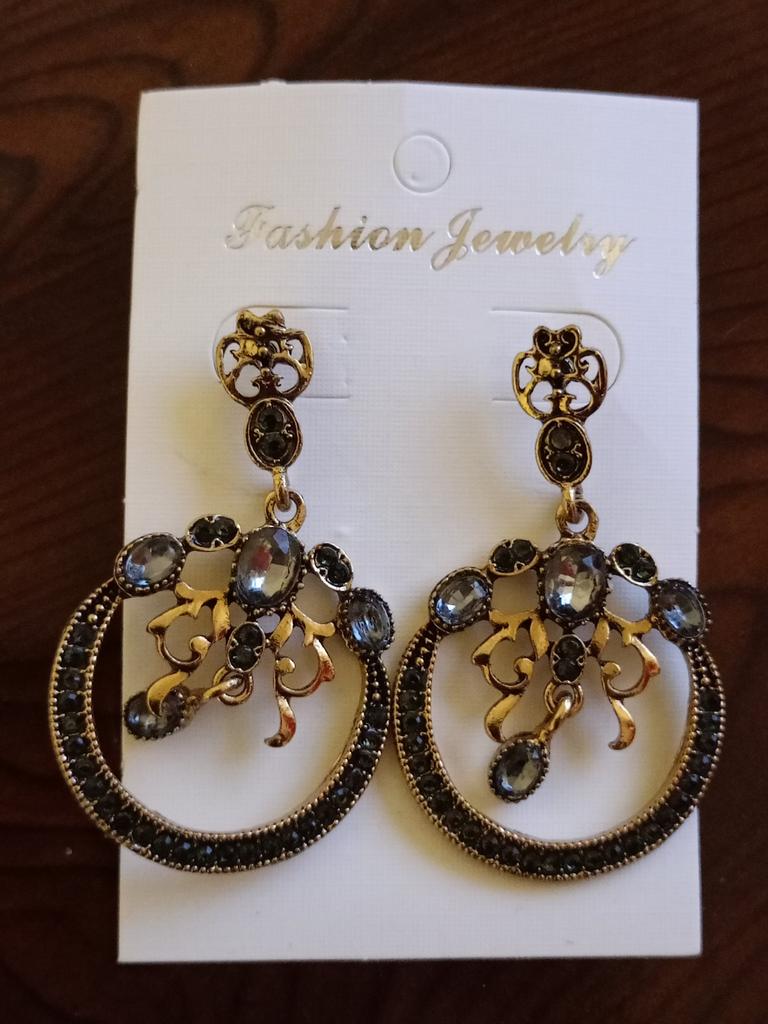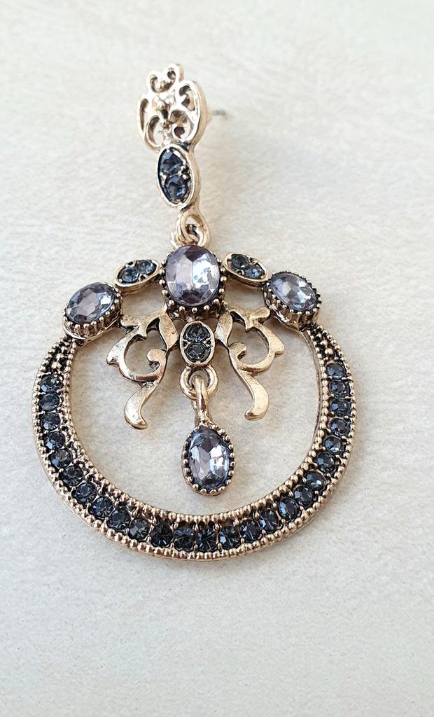 Grey Crystal Drop Earring For Women Antique Gold Color Indian Earring Vintage Round Wedding Jewelry Gift