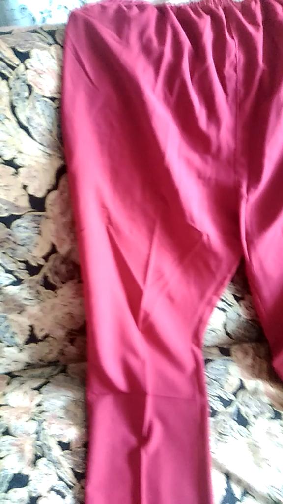The fabric is pleasant. The color is vibrant, as in the picture. I don't know how they iron. On the legs, the size of the trousers is normal. But in the waist back to back, it could be wider)). Fits the ass, because there is a stomach. No photos yet, because summer is over