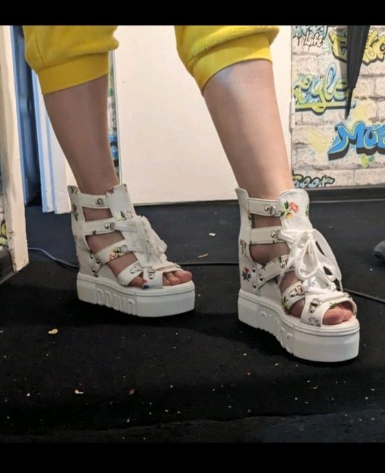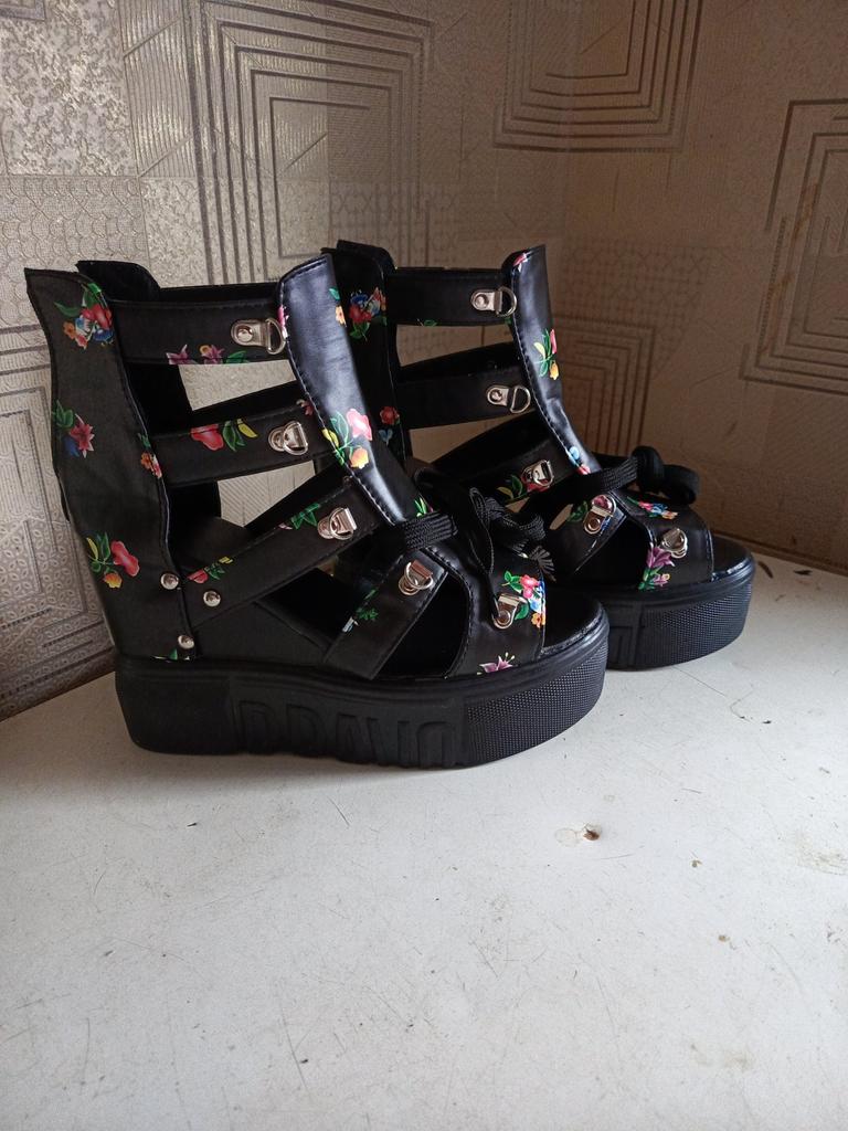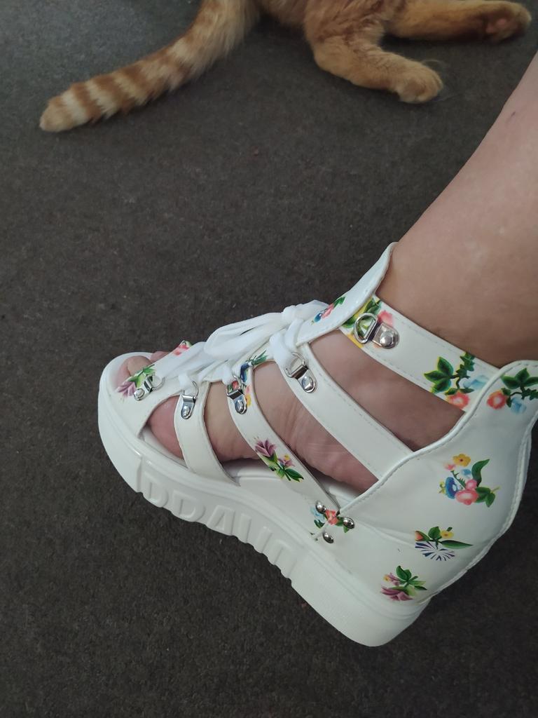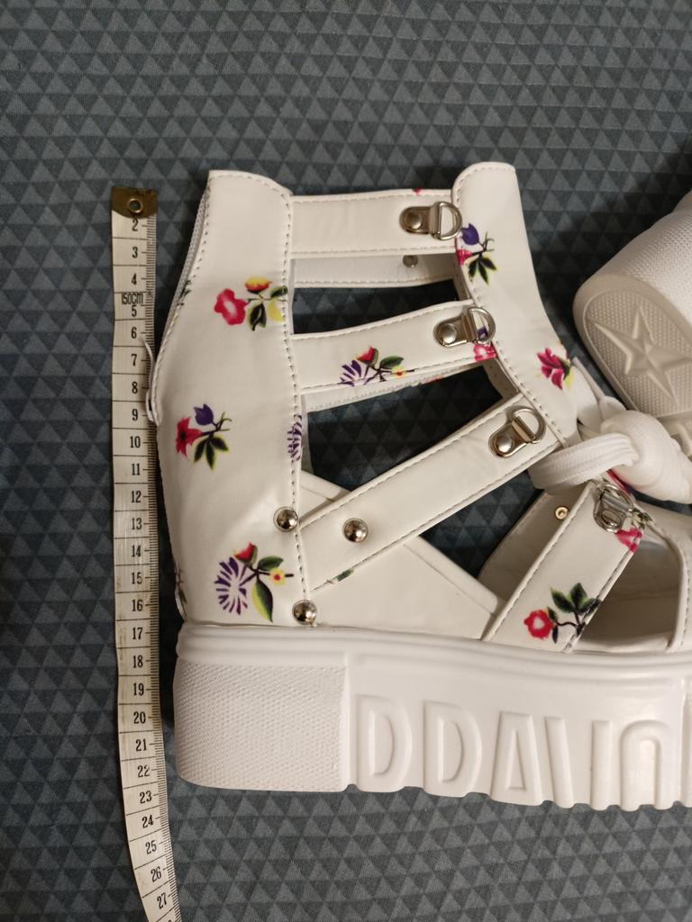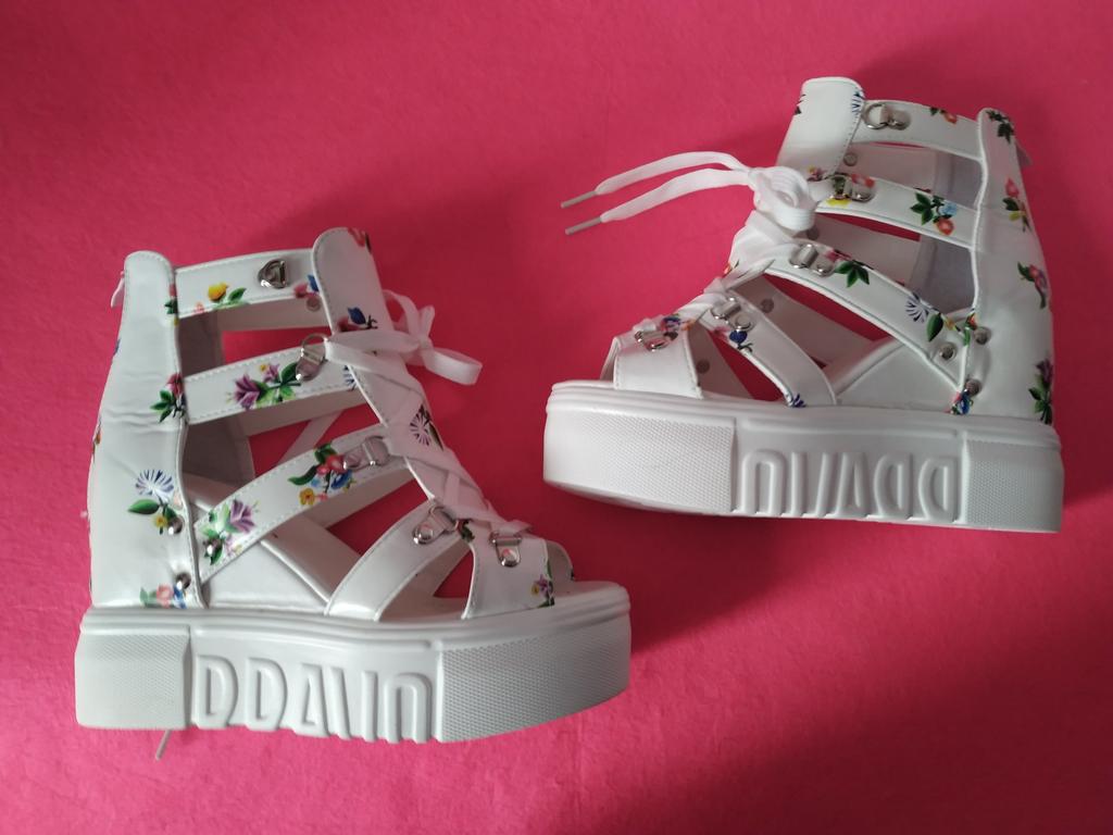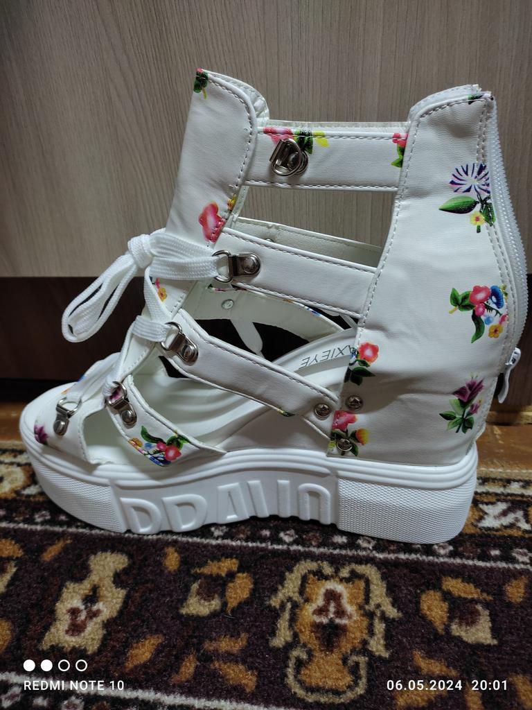 The shoes are exactly as in the photo. Size 38 corresponds to the description: insole length 24 cm. The only thing that remained unclear to me is what material they are made of, as they are too light. PROS (+) In these shoes, the legs appear thinner and longer due to the high platform CONS (-) I don't recommend buying for girls who are used to flat soles: the platform is too high, you need to know how to walk in such.