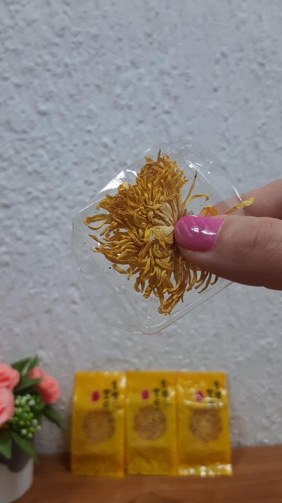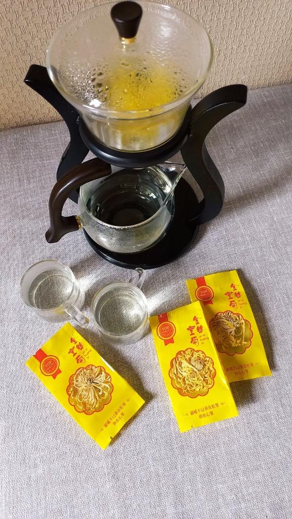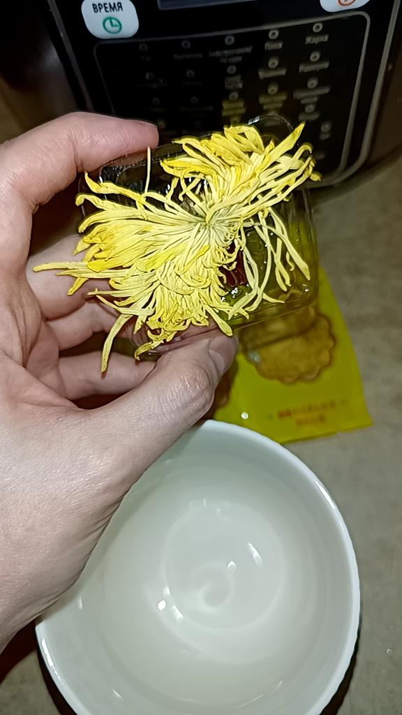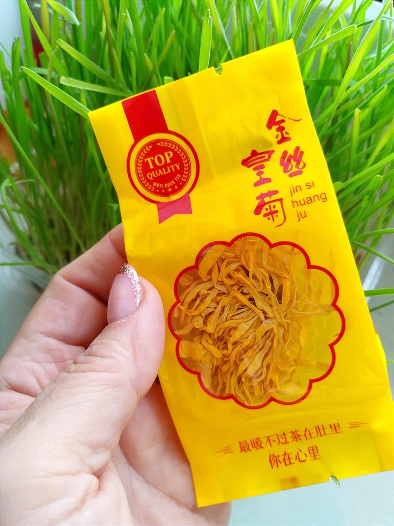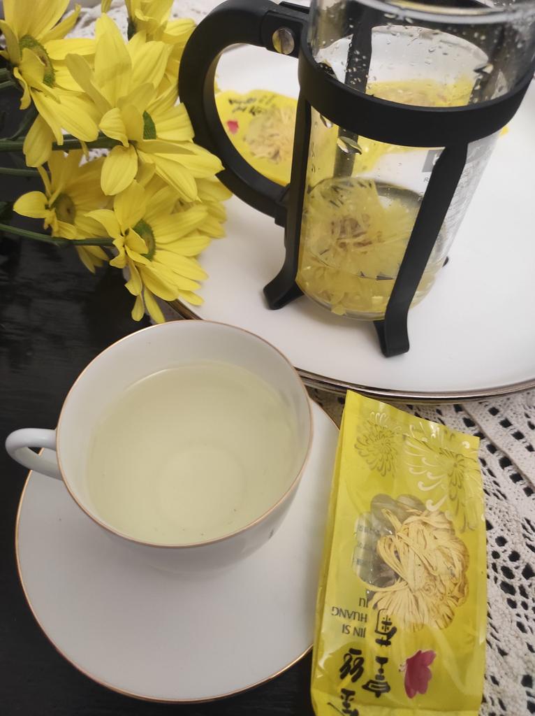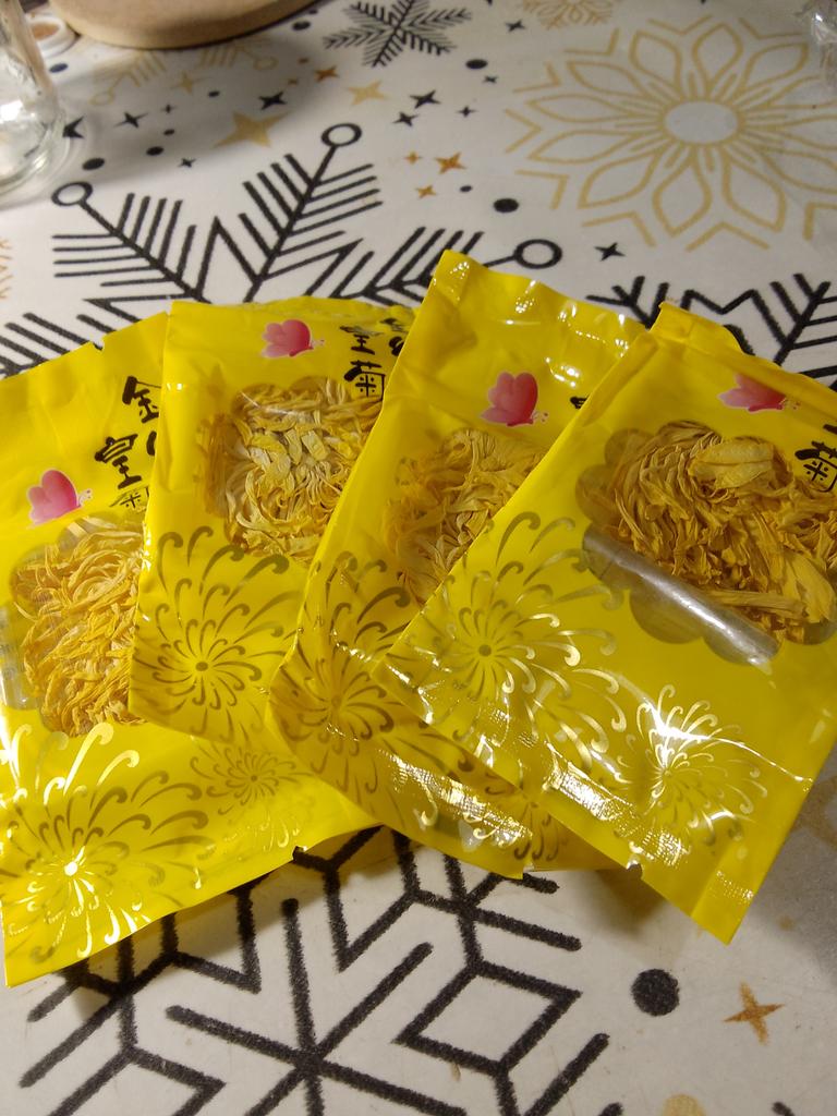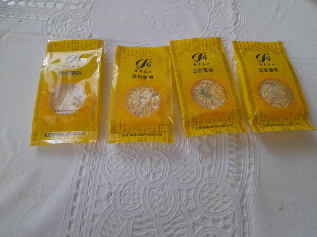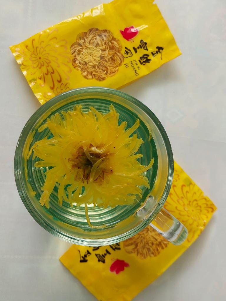 Tea with yellow chrysanthemum 4 sachets per set. Inside everyone is a real flower. The taste is pleasant, herbal with a hint of flowers.. Interesting. I like it.