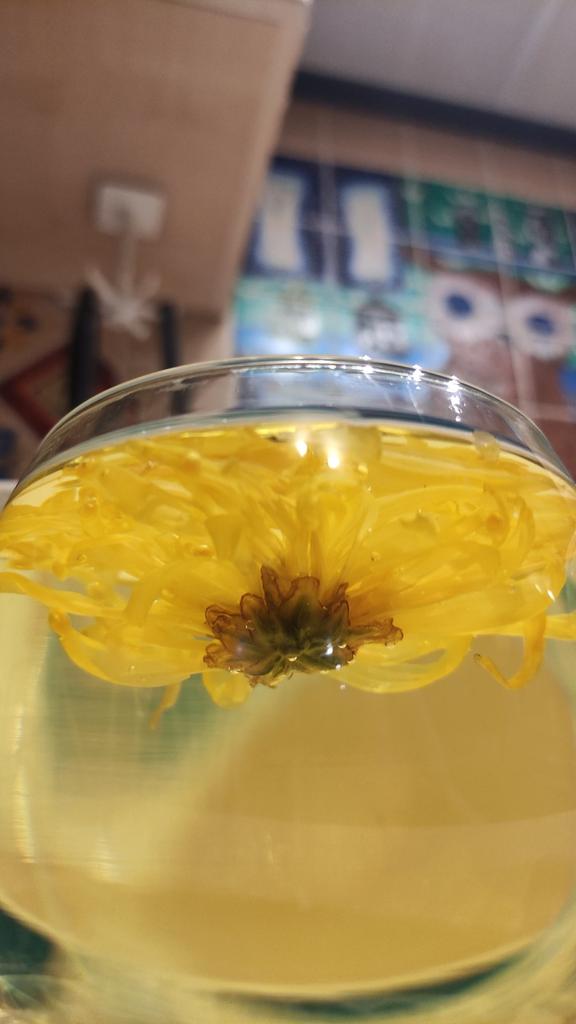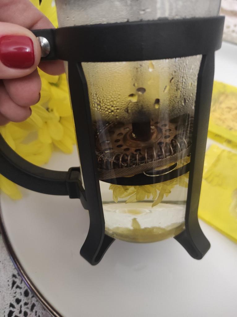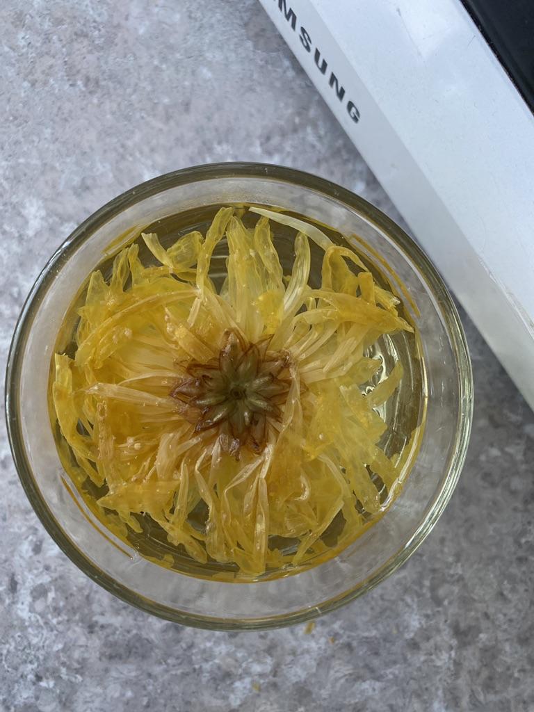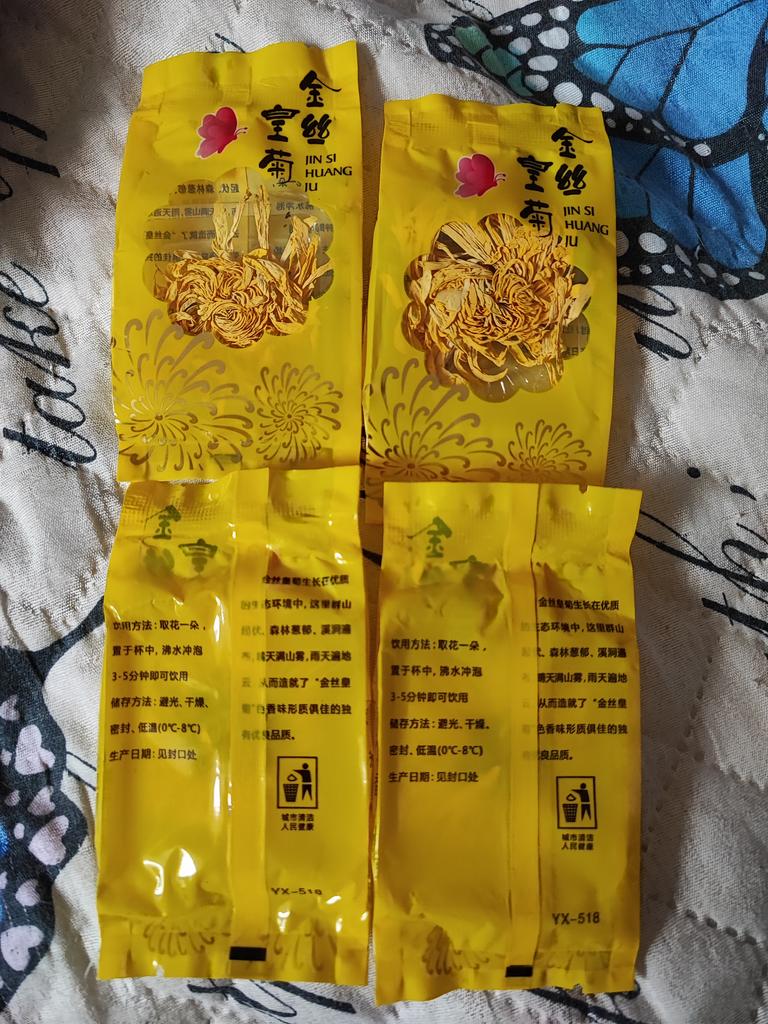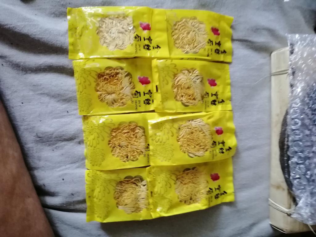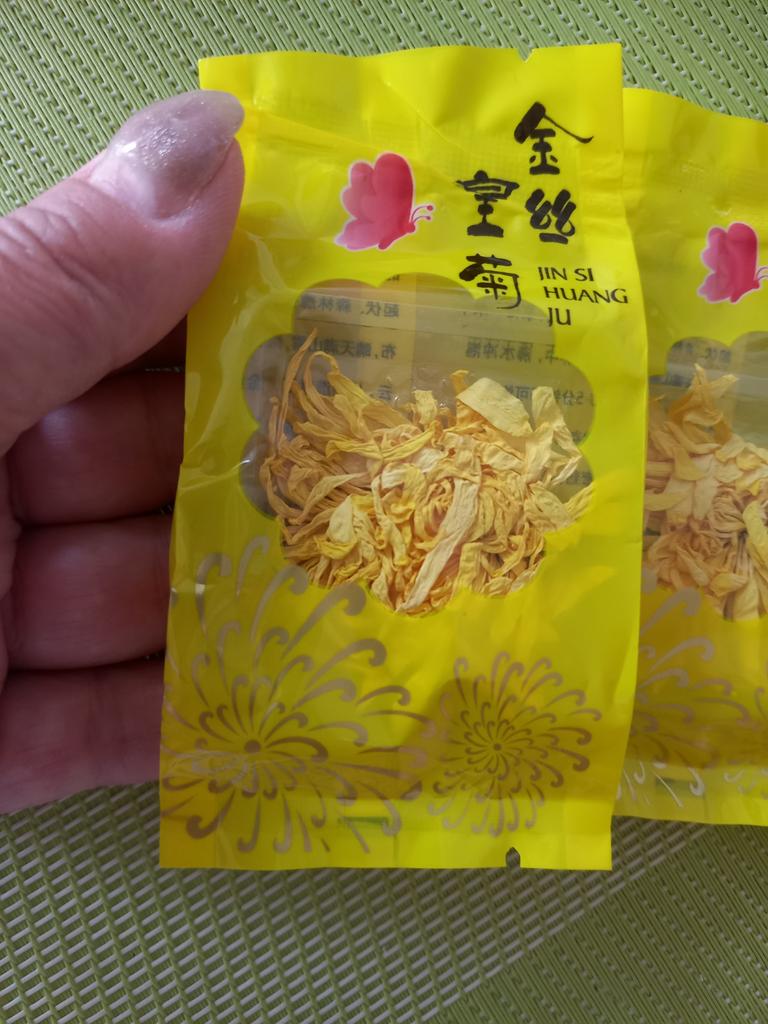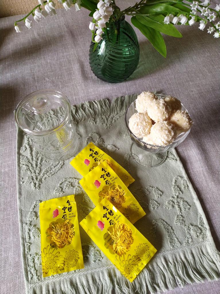 Tea with yellow chrysanthemum 4 sachets per set. Inside everyone is a real flower. The taste is pleasant, herbal with a hint of flowers.. Interesting. I like it.