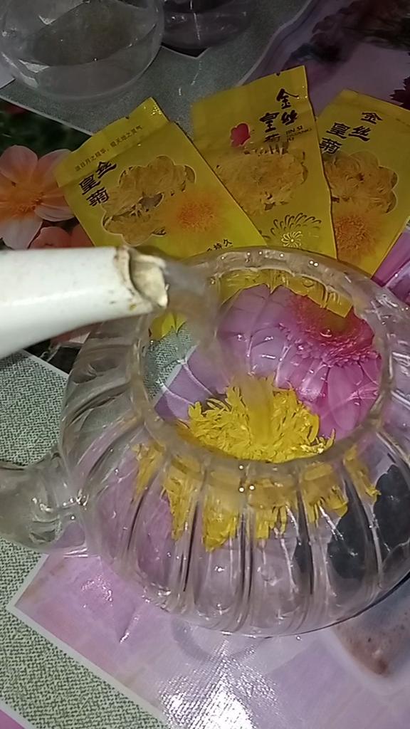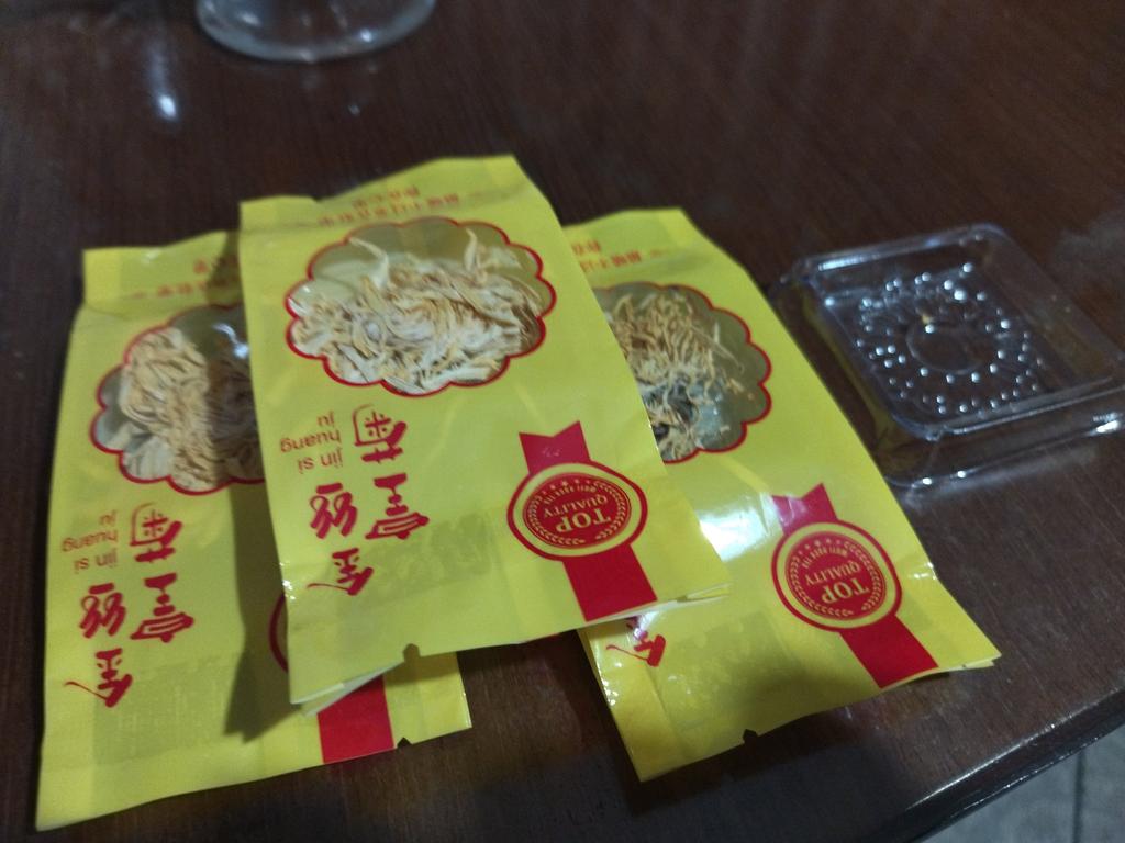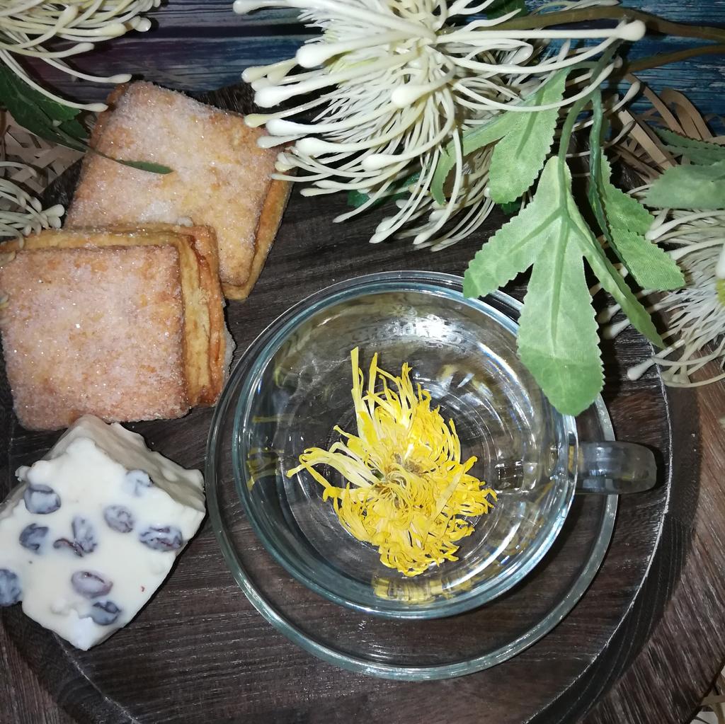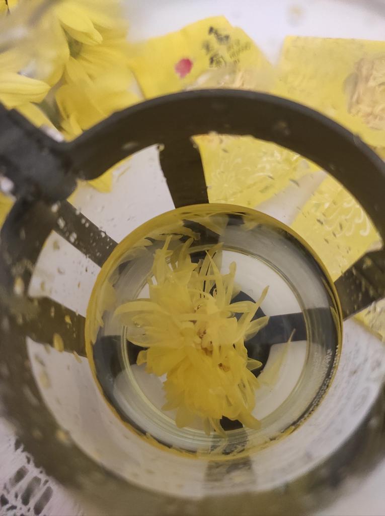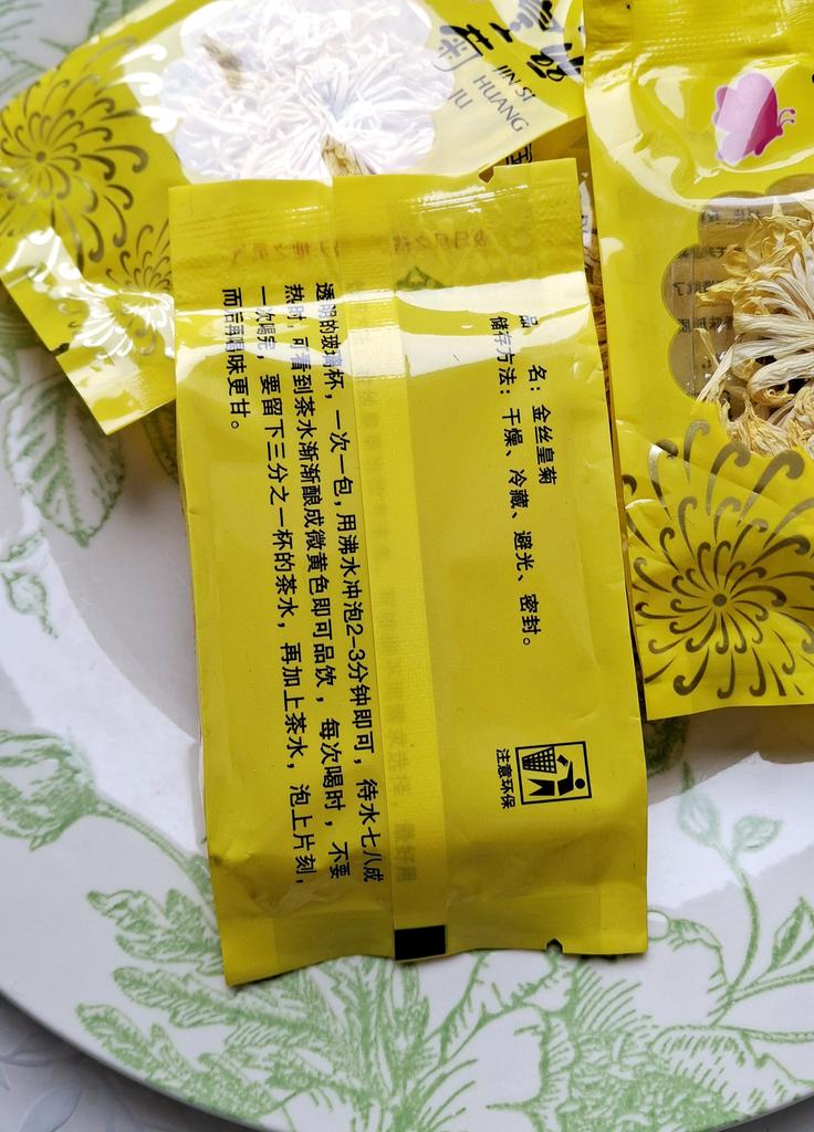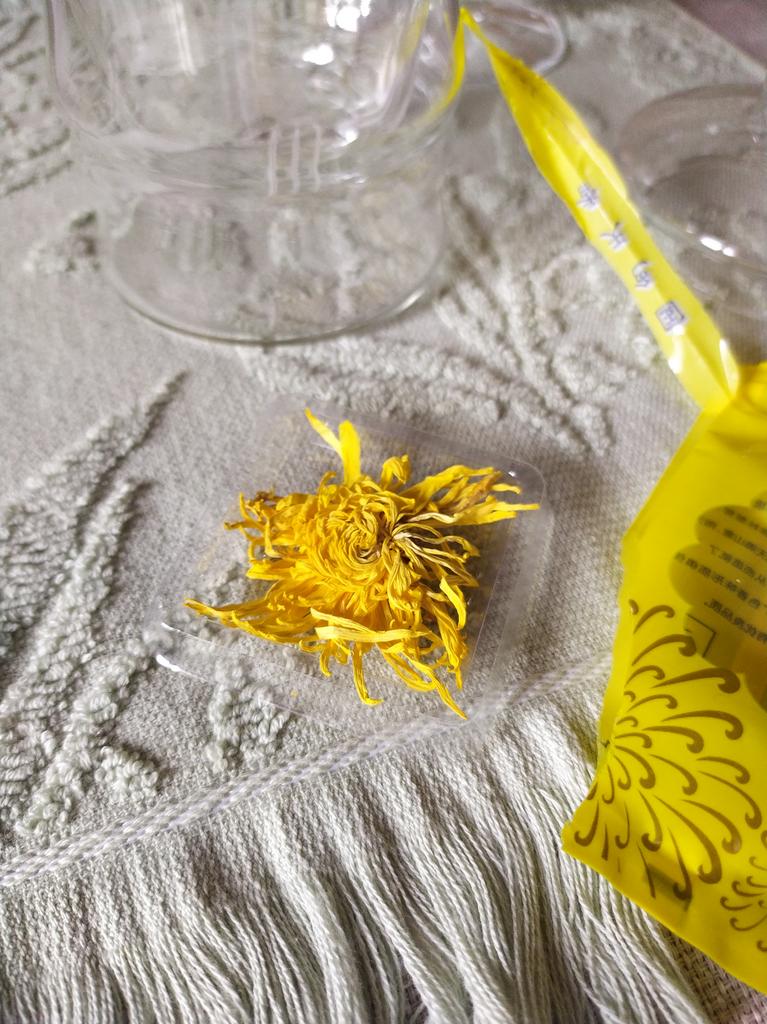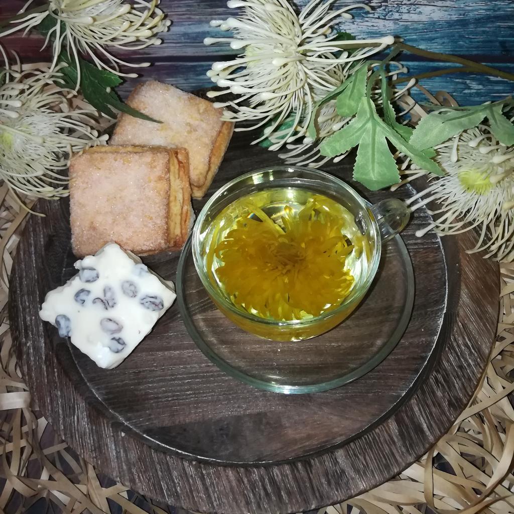 Tea with yellow chrysanthemum 4 sachets per set. Inside everyone is a real flower. The taste is pleasant, herbal with a hint of flowers.. Interesting. I like it.