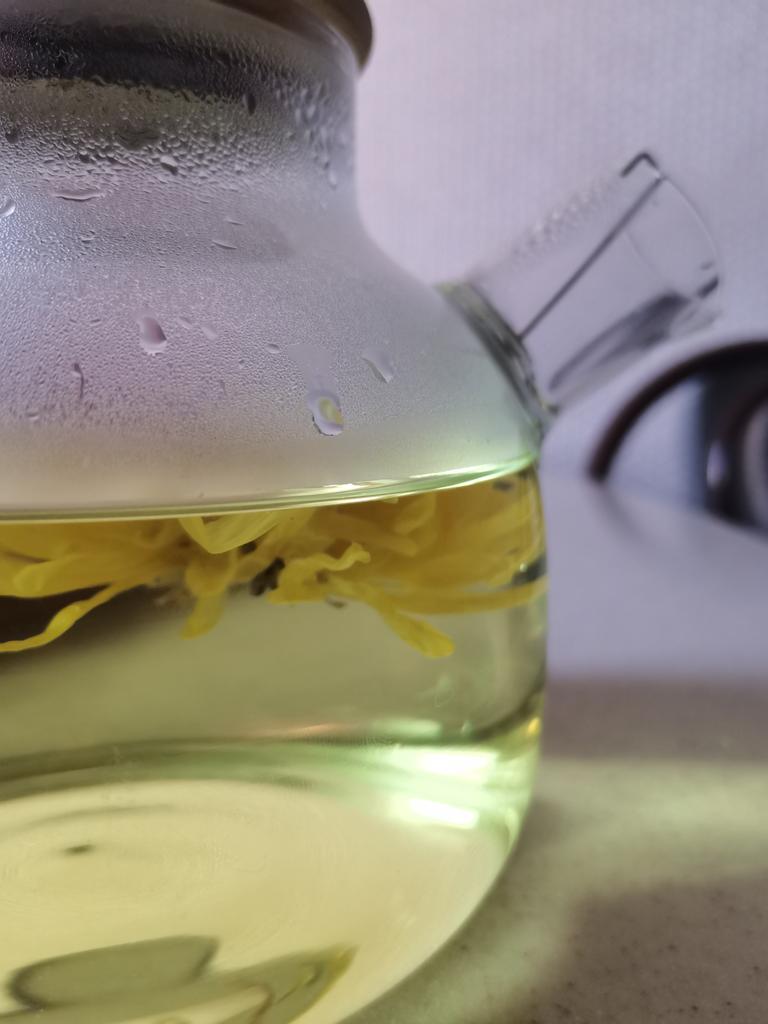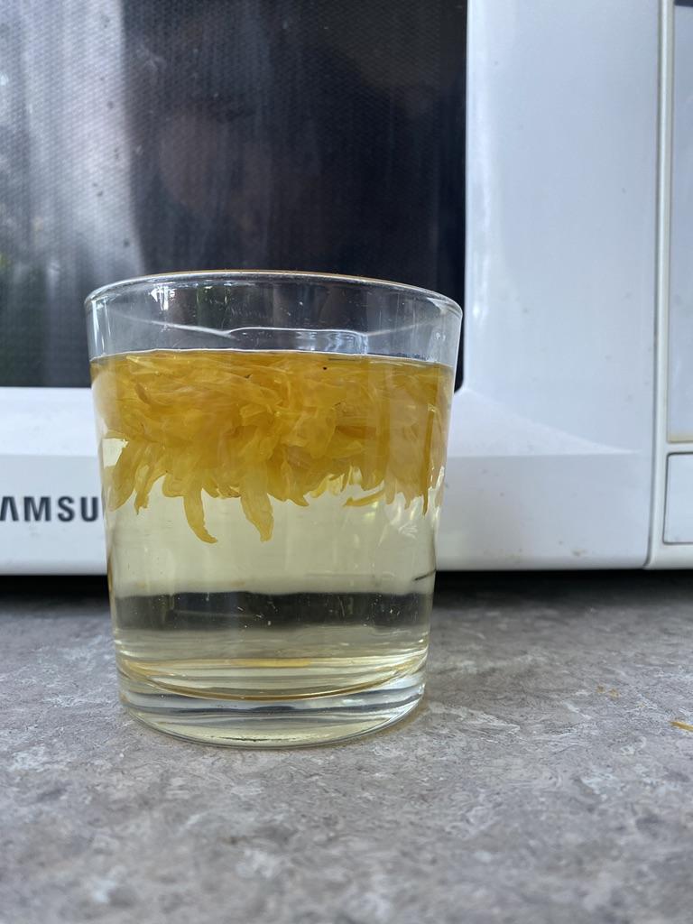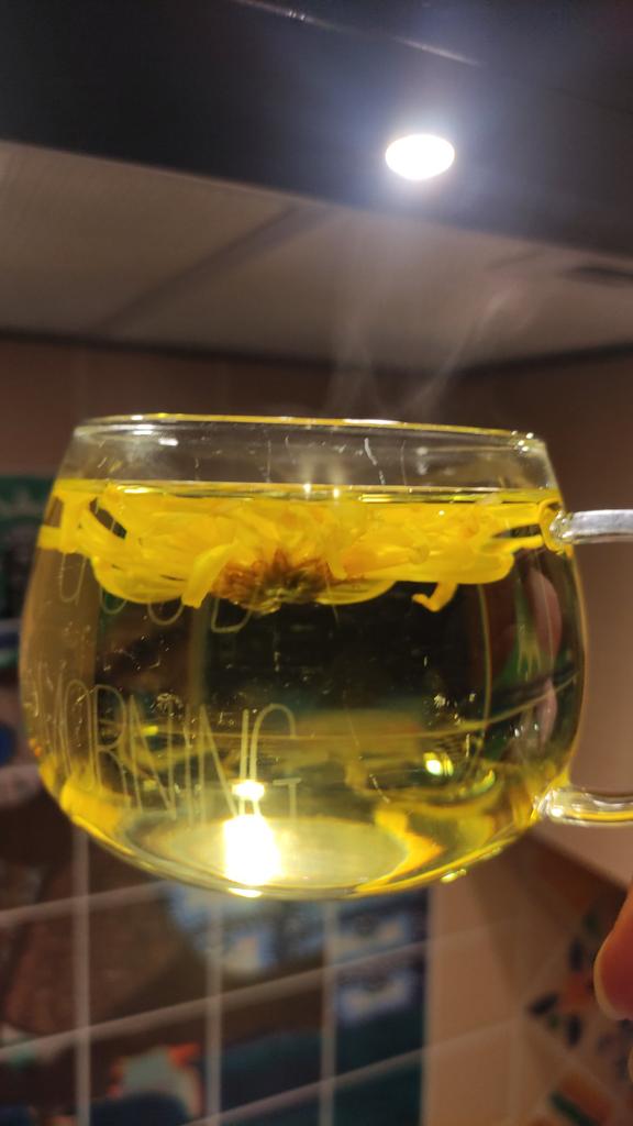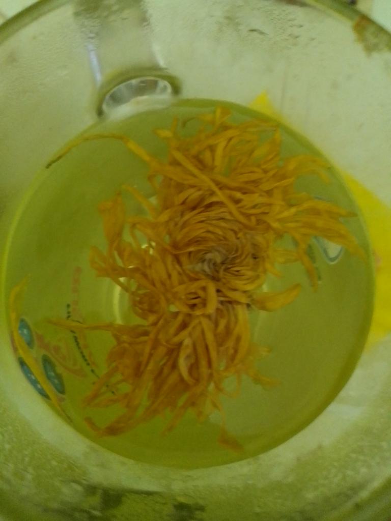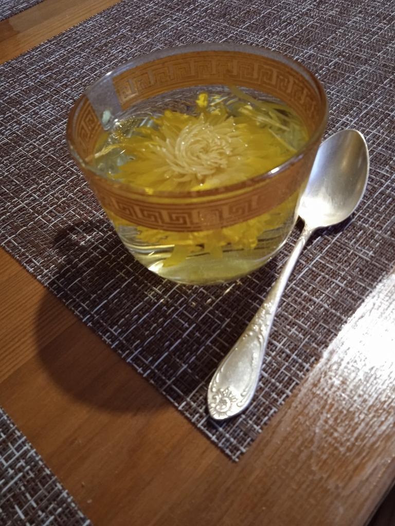 Tea with yellow chrysanthemum, drinks pleasantly.