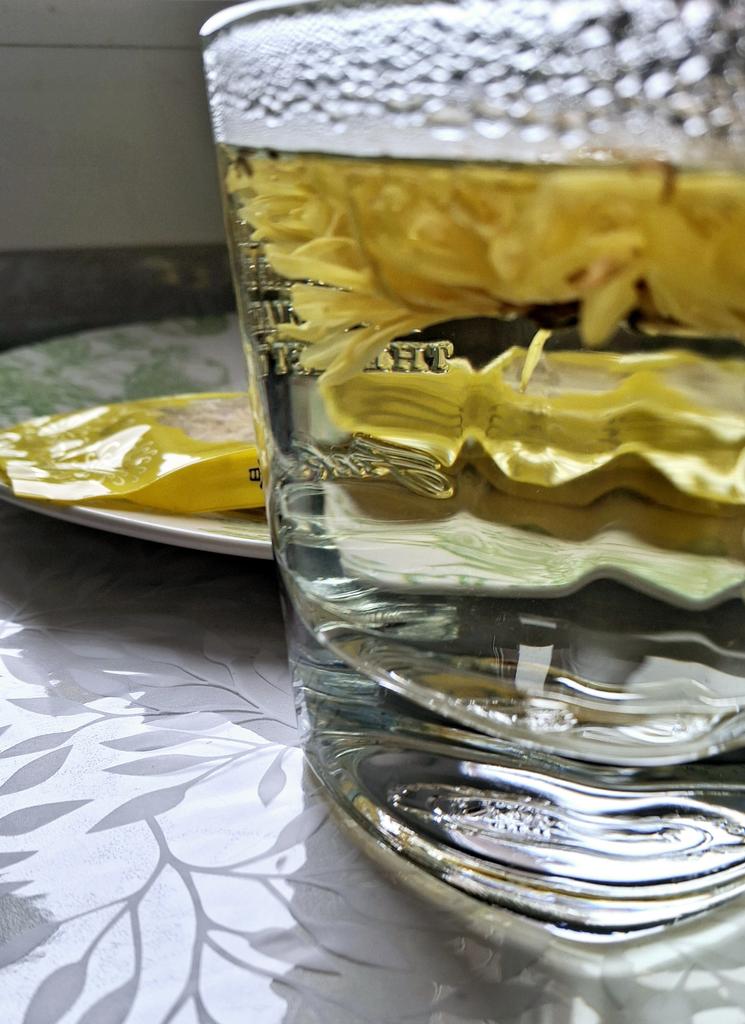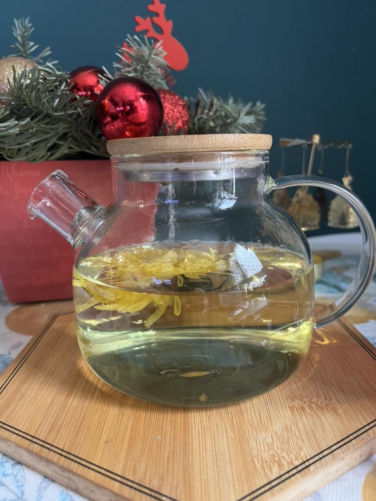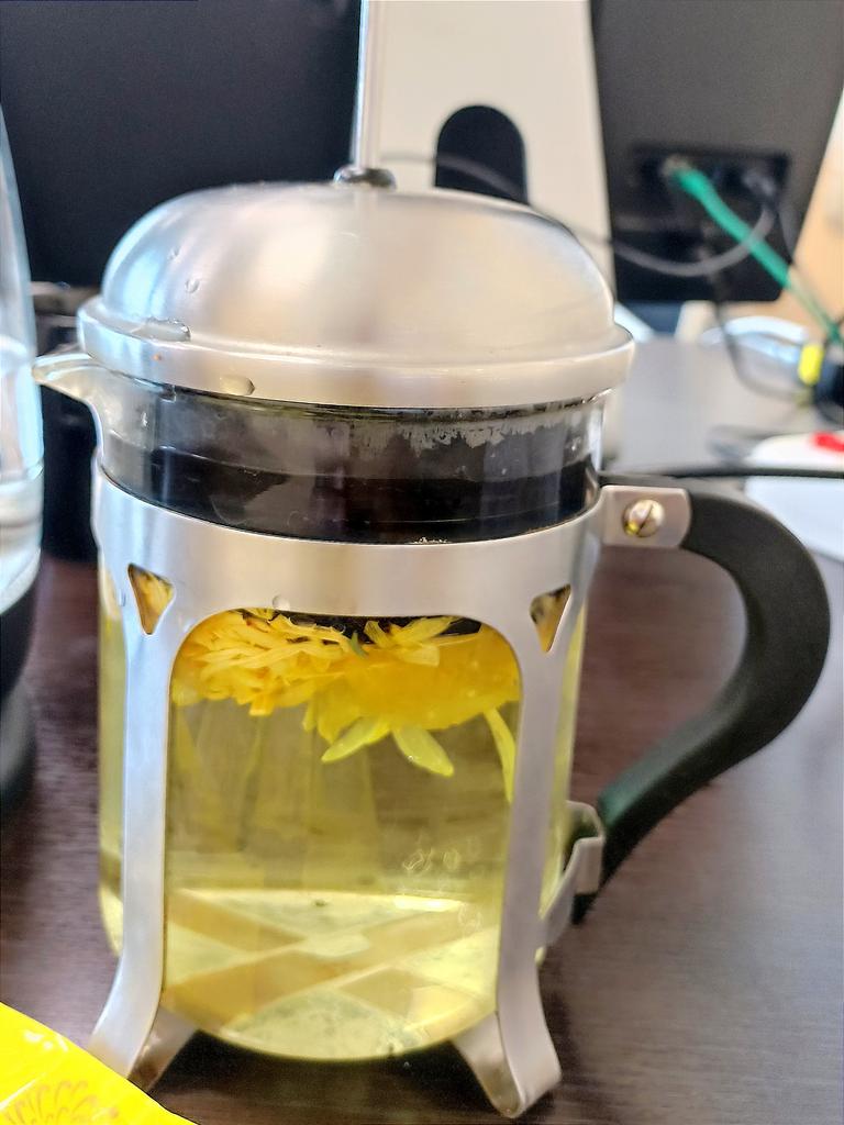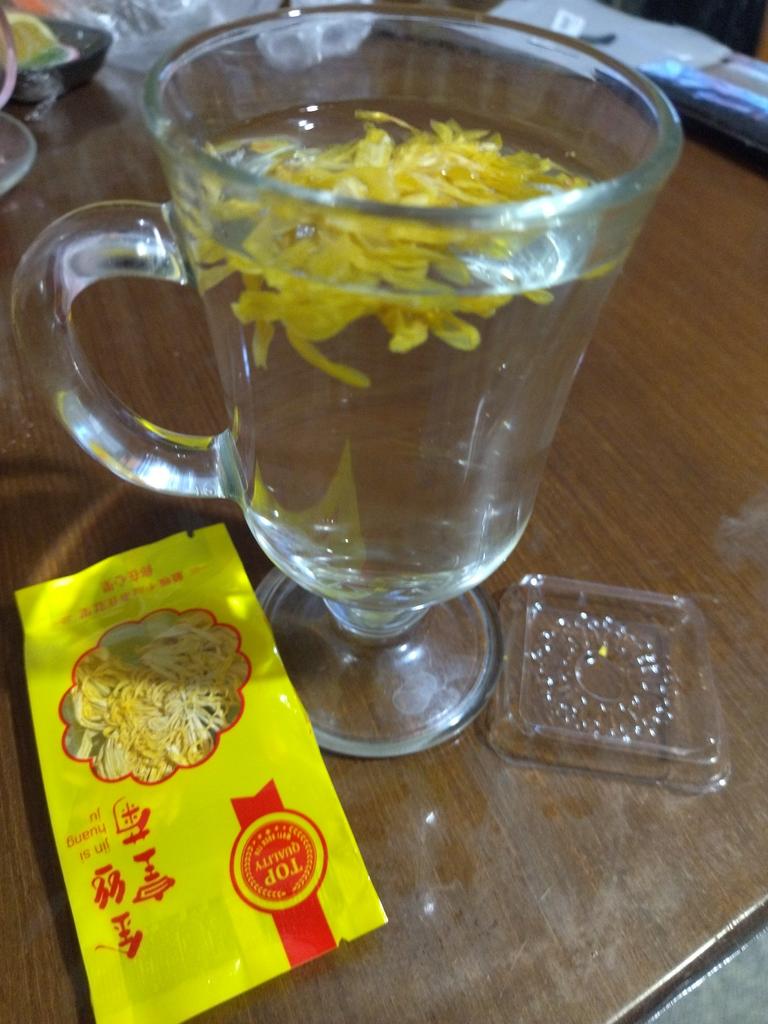 Tea with yellow chrysanthemum, drinks pleasantly.