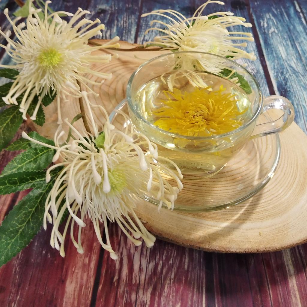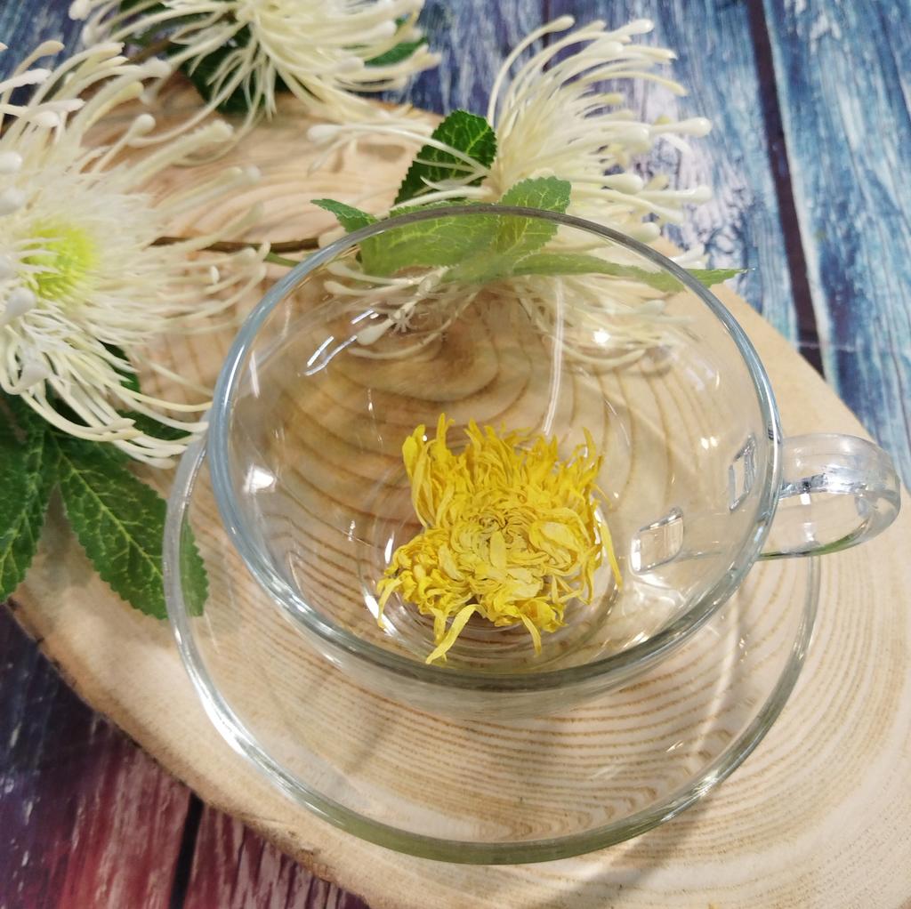A nice tea with chrysanthemum. The taste of the tea is weakly expressed. The color is light yellow. It has a mild calming effect. There are 4 tea bags in the package.