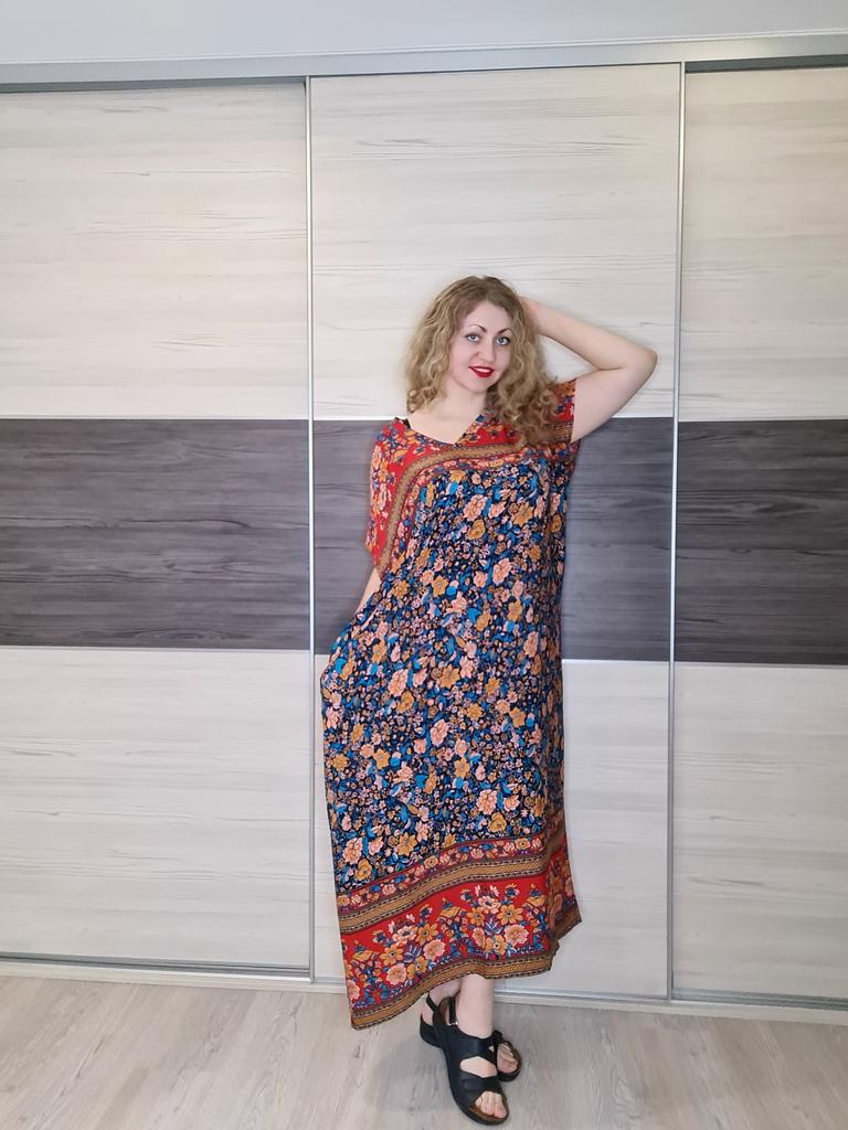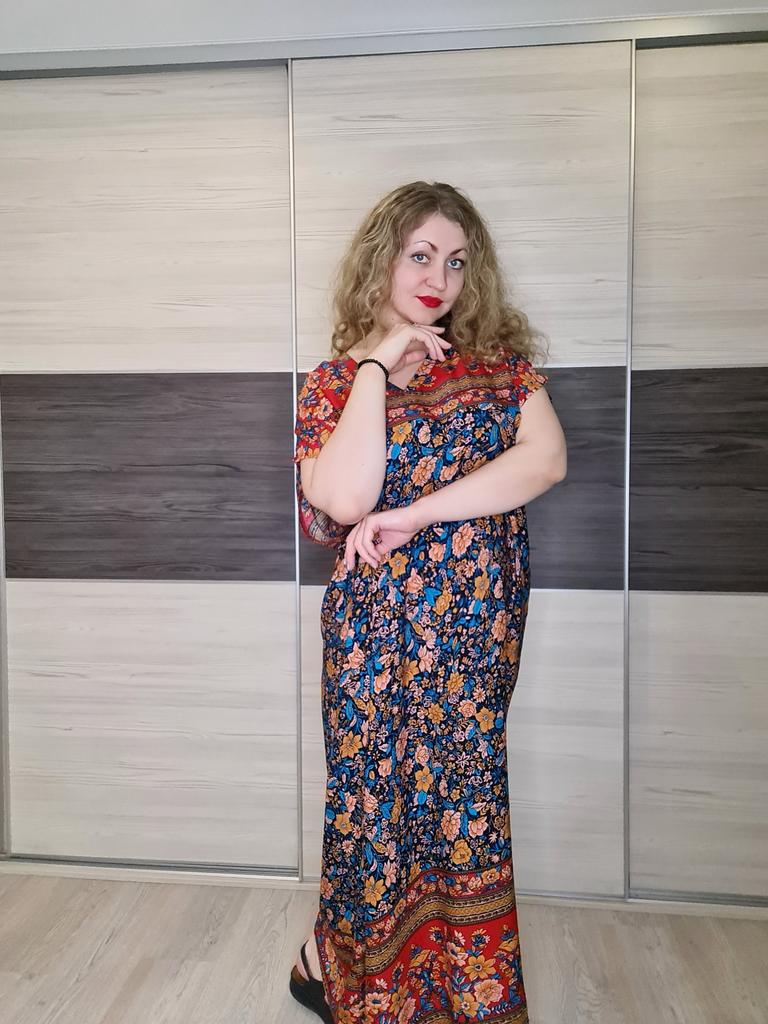 The dress is long, it fits. The neckline could be bigger, it's a pity I don't have a sewing machine.