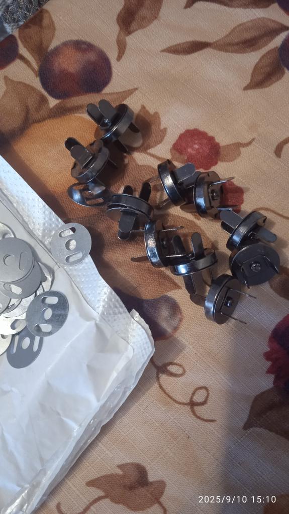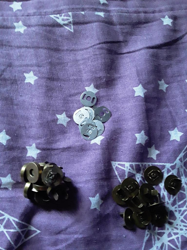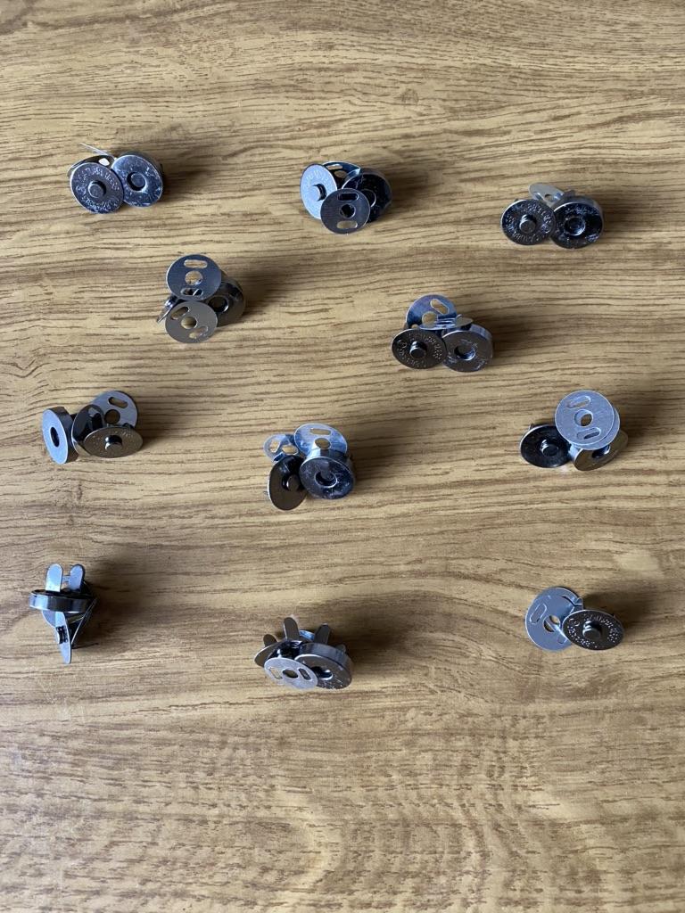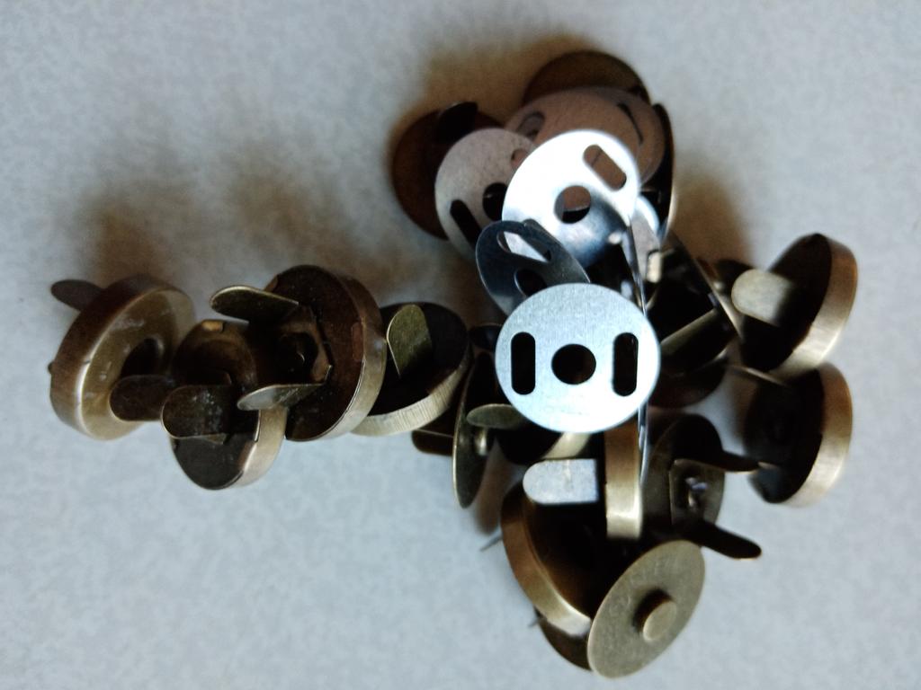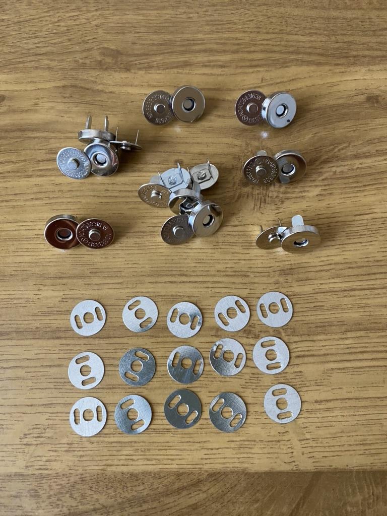 Products received, as described except that 4 small circles are missing that go behind the magnet button. Out of 10 buttons ordered, I can only use 8. Too bad.