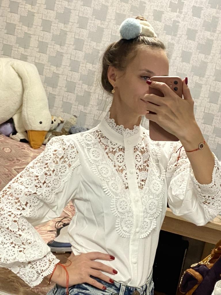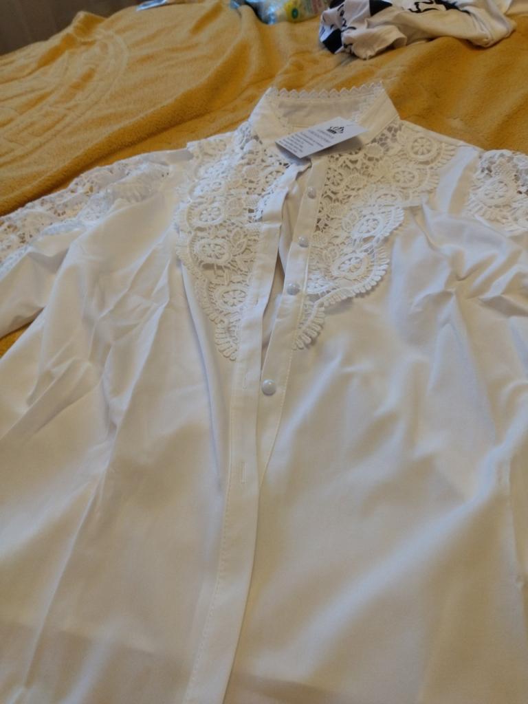 I wanted a pure white one, like in the picture, but the blouse arrived in ivory color. I would like to have an attentive attitude towards customers, the product itself is good. The order is written on time, tracked.