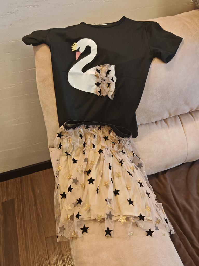 The T-shirt is cool, beautiful, but the skirt is terrible (threads stick out in different directions, the petticoat catches on the mesh and the skirt rides up)