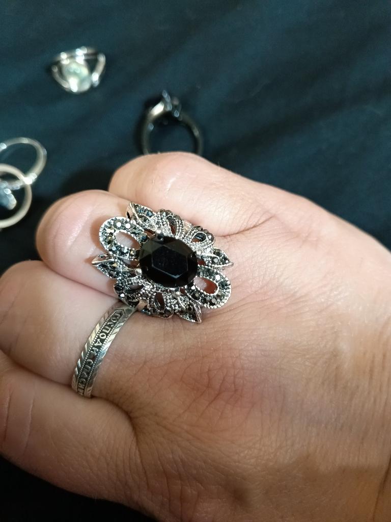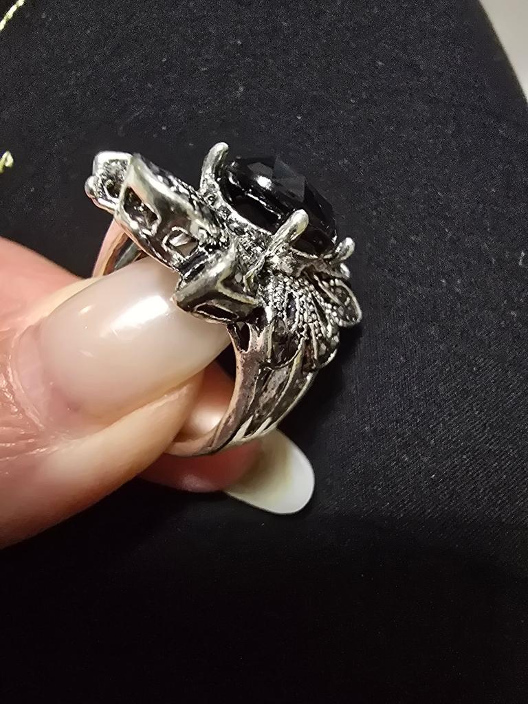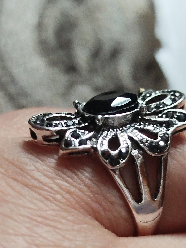 Beautiful large signet ring with a glued-on black stone measuring 1.0 cm Γ 1.0 cm. The ring size corresponds to the one ordered. The upper part of the ring is 3.0 cm Γ 2.5 cm. It looks good on the hand. I am satisfied with the purchase.