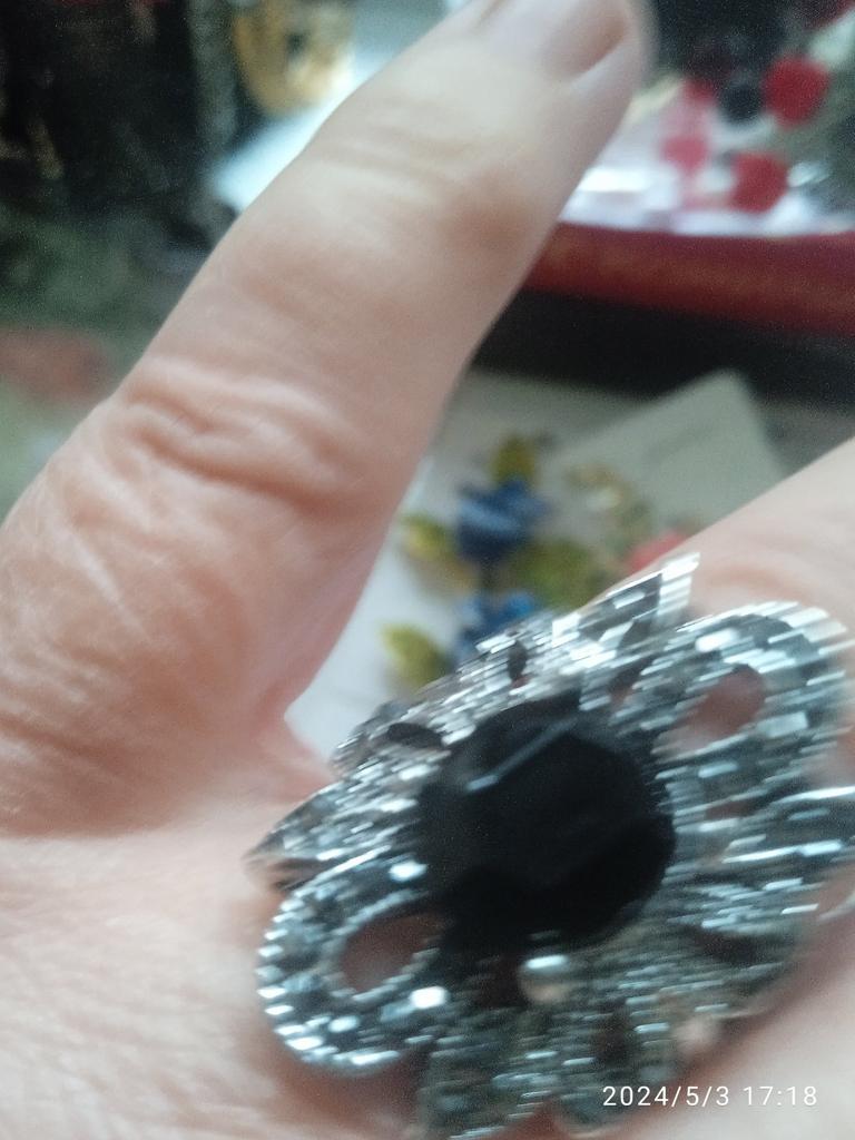 The ring is beautiful, looks festive, goes perfectly with purple, lilac, etc.
