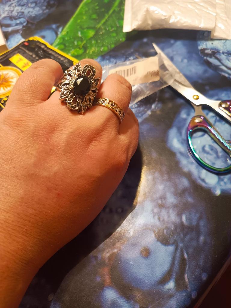 The ring is large, much more beautiful than in the photo. Neat work. The size corresponds to the ordered one. I am happy with the purchase.