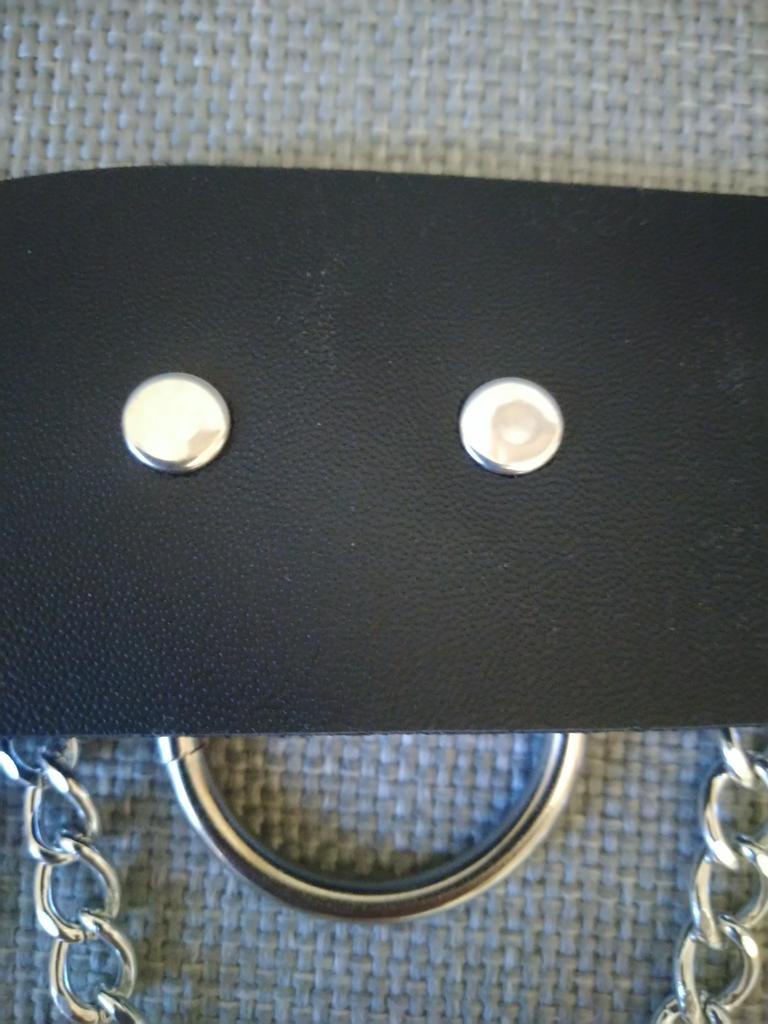 The back of the rivets is open and angular. Leather is very, very thin. Collar not long enough for neck.