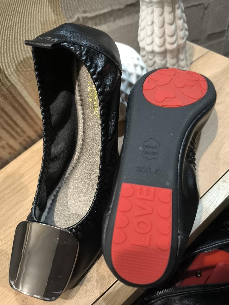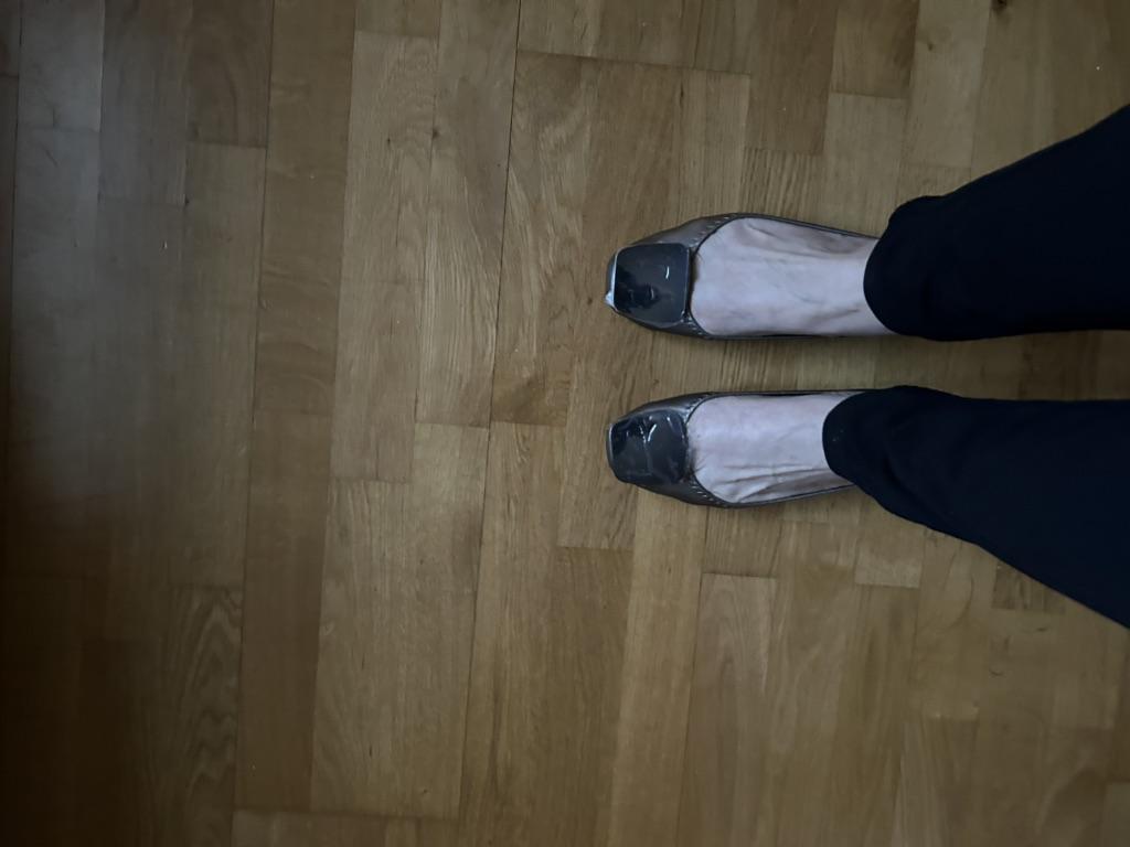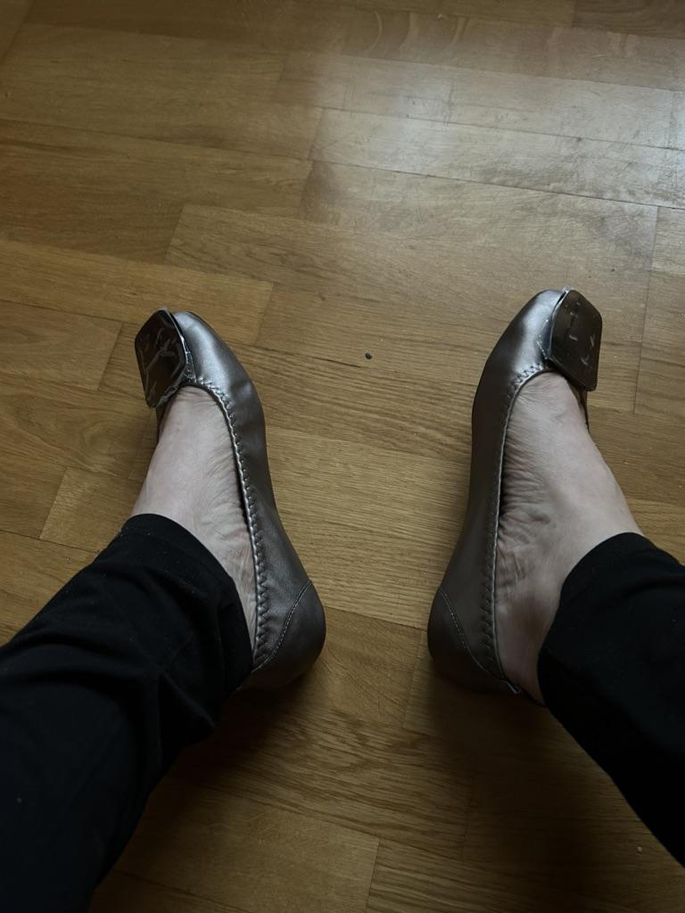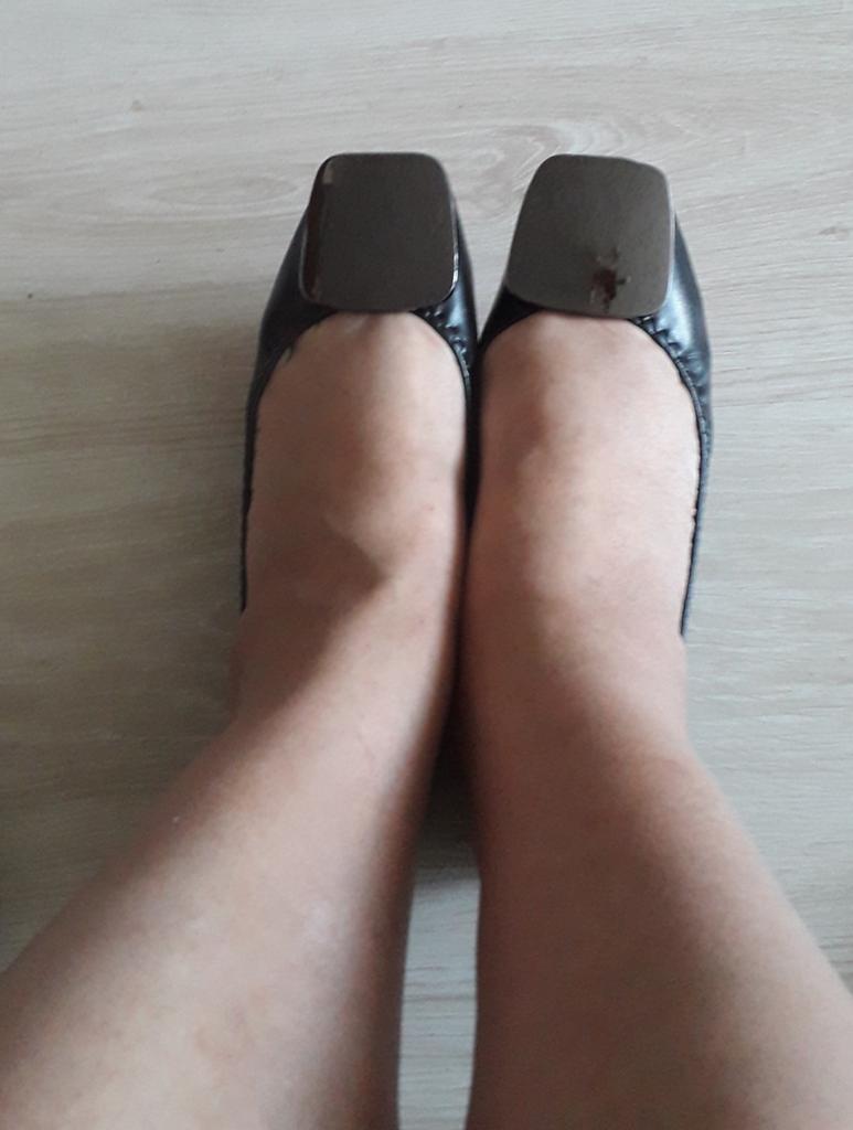 Ballet flats skper. They don’t seem to be small... But somehow my thumb sticks out. And so cool. Neat on the leg. But what about slippers in them?