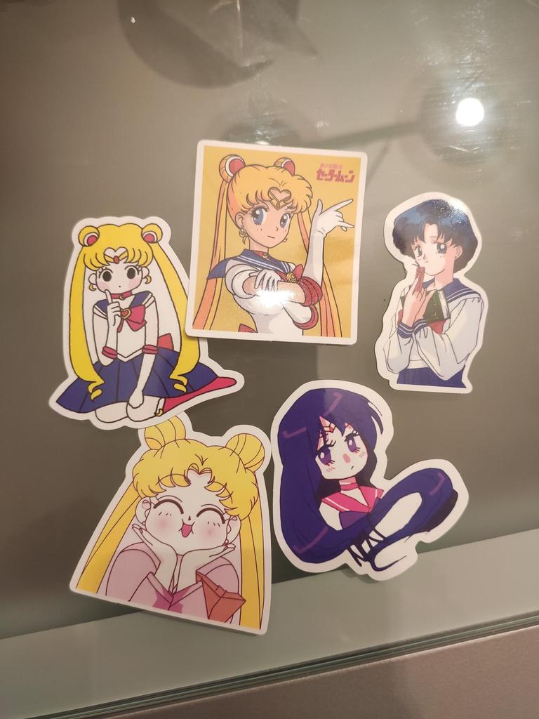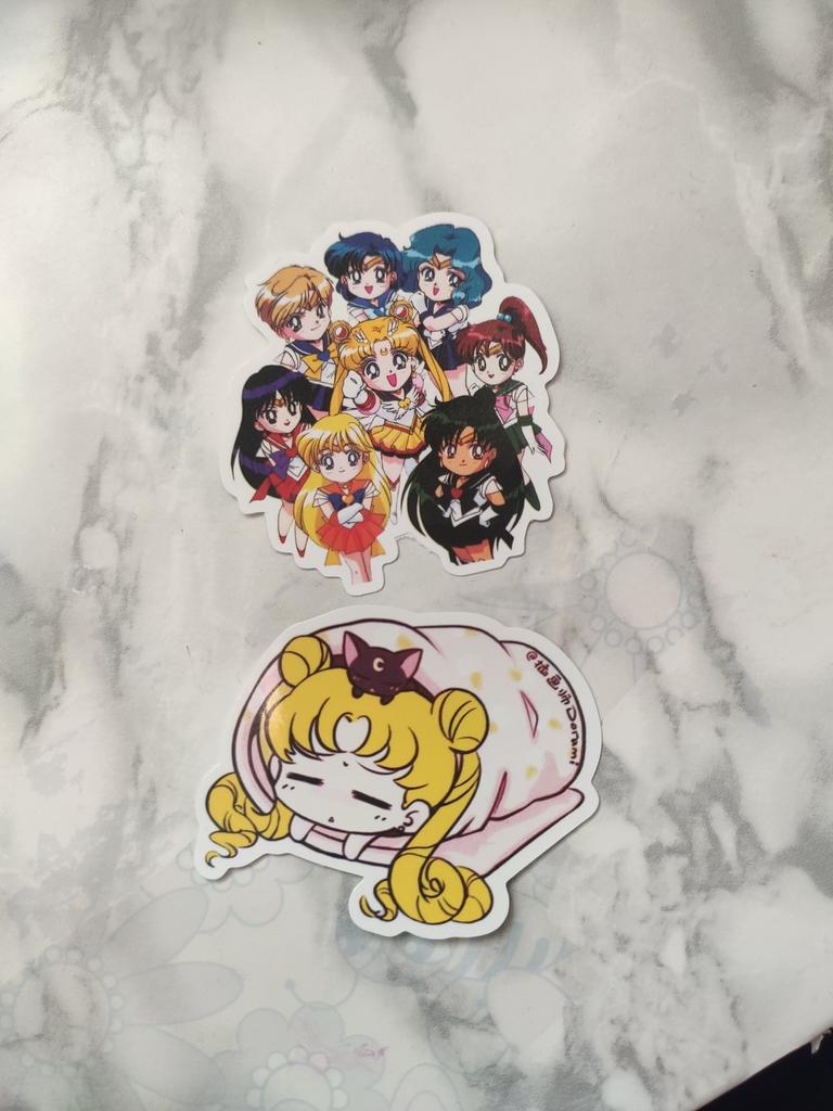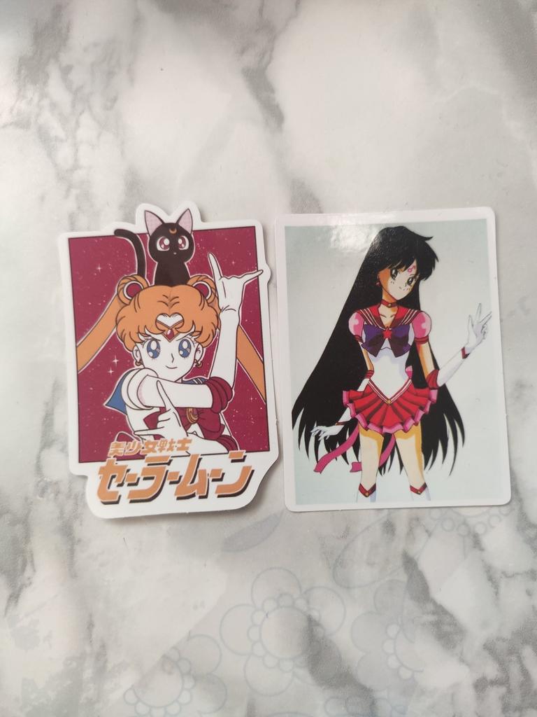 🌙💖✨These Sailor Moon stickers are very pretty! The drawings are very good and have a super vibrant color💕🙌🏼. The quality of the stickers is great.. I was surprised by the size, since I imagined that there were many small stickers but no, they are all of a considerable size. Using just one is enough. It can be used to clip on books, notebooks, school supplies, etc. But they can also be put on windows, doors, the car ... There are classic designs and other very funny, cartoon-type. Here I leave my favorites for you to see them up close. I highly recommend these stickers 👌🏼.