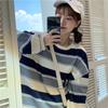 Women Japanese Shirt Hoodies Spring Striped Long Sleeved T-shirt Loose Top Large Size Round Neck Bottoming Shirt