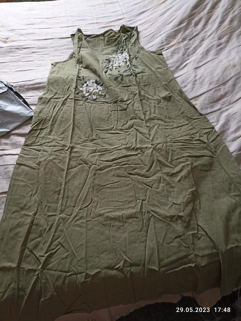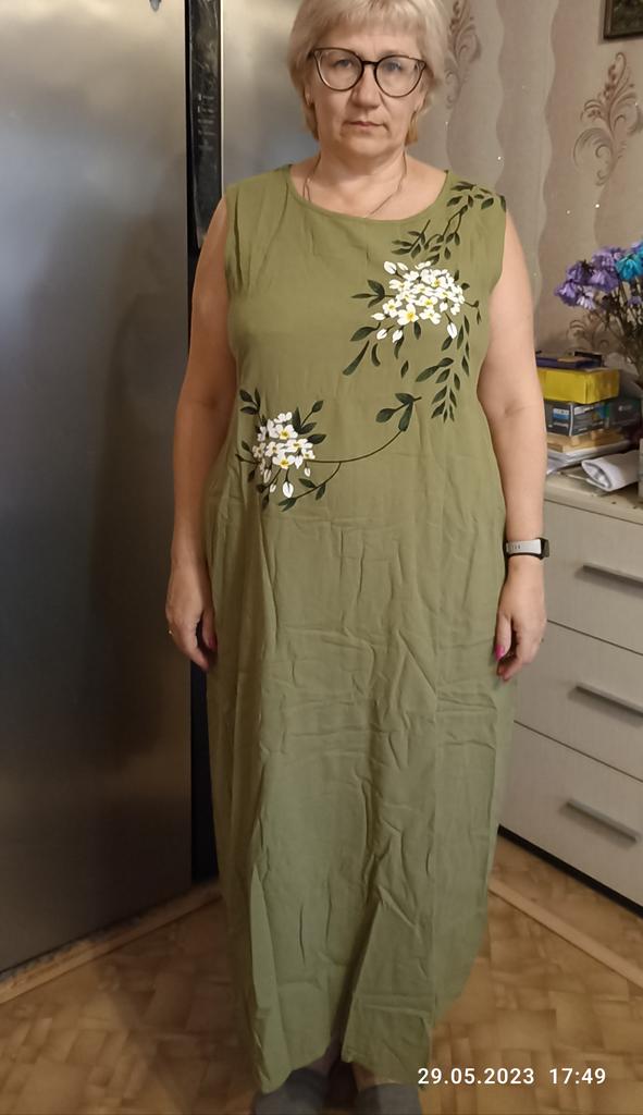 I wear it all summer, a great little dress. Thank you. I saw this dress and want to add to my review, it's a really great dress, the material is excellent, I'm wearing it for the fourth summer, washed it without taking it off and put it back on. It's faded a little, but still, I won't throw it away. I like it very much.