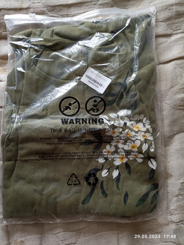 Cute dress. Cotton. Size 48XL is a bit small. I recommend buying it
