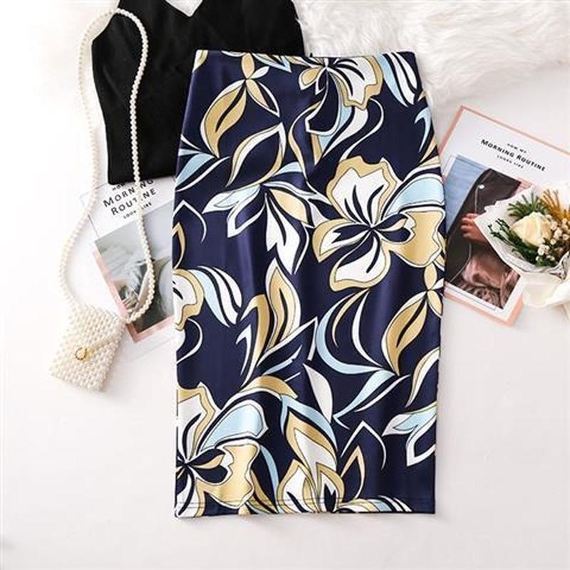 Summer Print Elegant Pencil Skirt Women High Waist Knee Length Skirt Female
