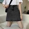 Summer Retro Simple High Waist Denim Skirt Women A- Line Dress Fashion Half-length Casual Short Jeans Skirt