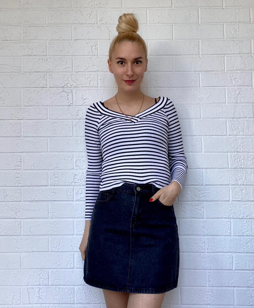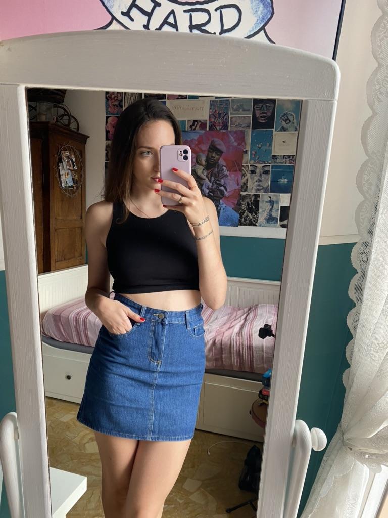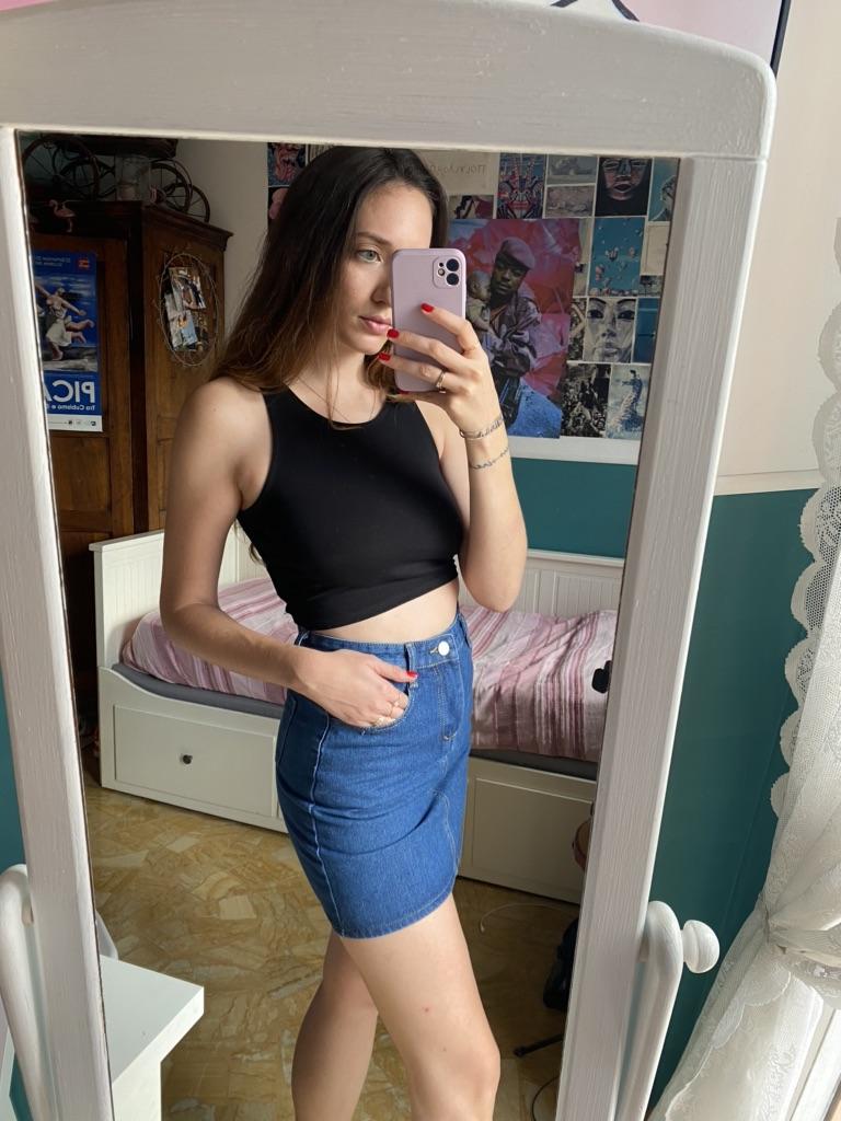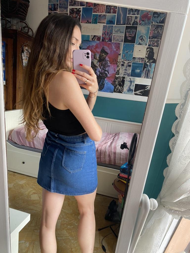I really like the color of the jeans and the material. I recommend one size up because it is very short. I'm 175cm tall and wear an M, but maybe an L would have been better for me. In any case as a model she is very pretty 🥰