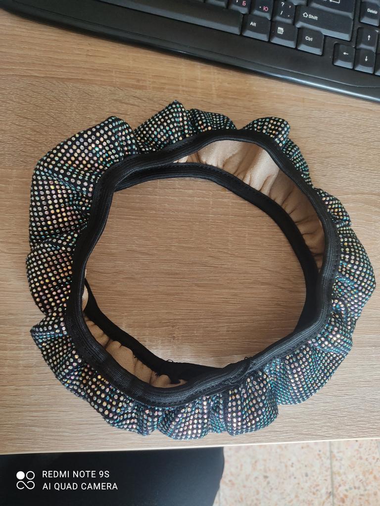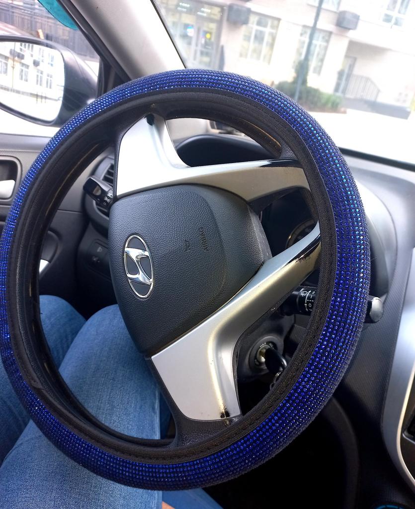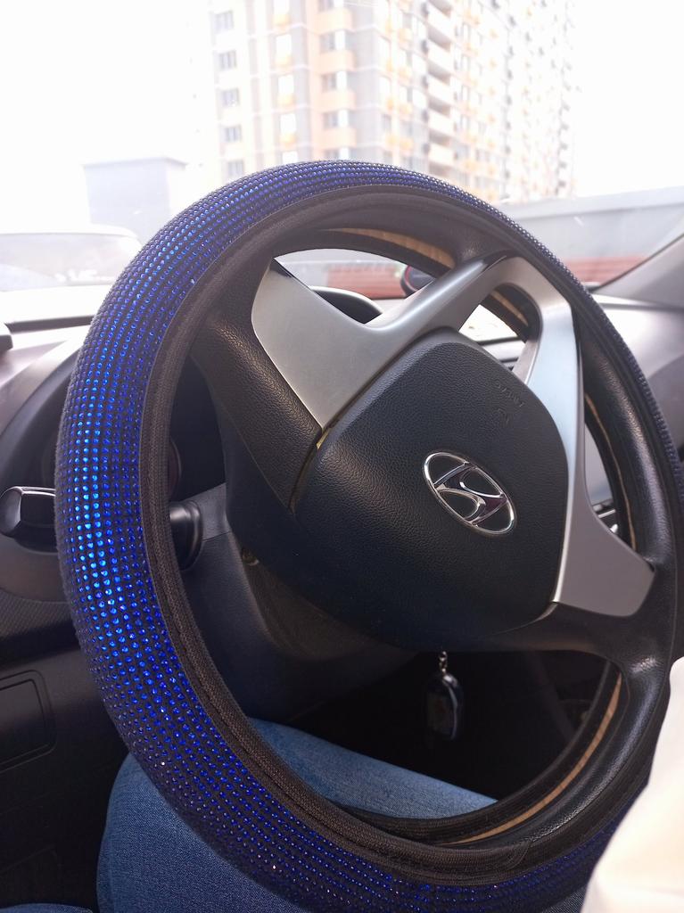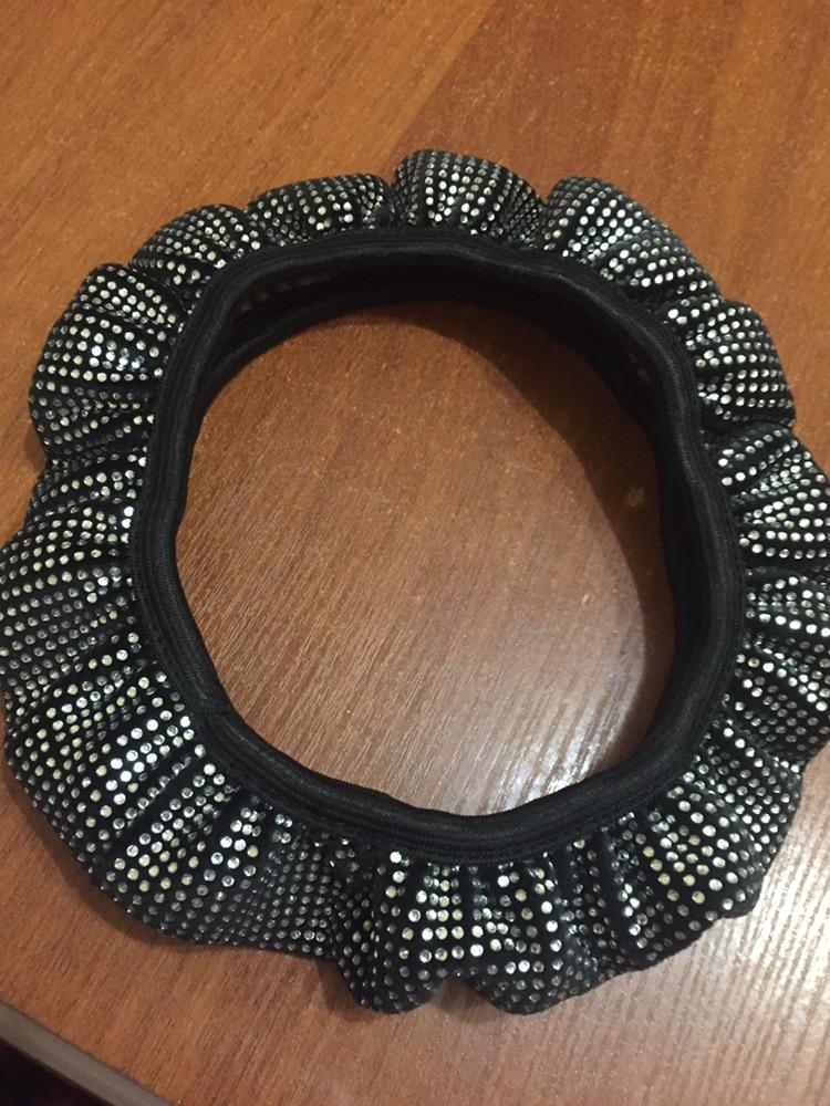The goods have been received. I ordered 36 diameter. The steering wheel is the same diameter. It runs a little small, I barely put it on. The quality was expected to be better. The stones are small stickers on the fabric. It seems to hold tightly. Not a single one has fallen off yet. It doesn’t sparkle, but now it’s winter, that’s to be expected. Judge for yourself, I posted the photo. .