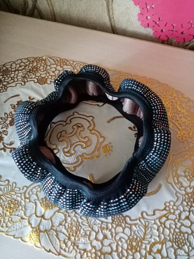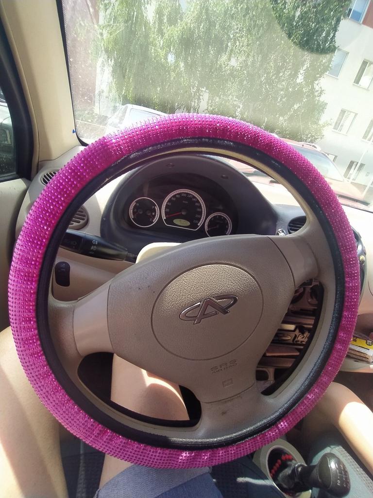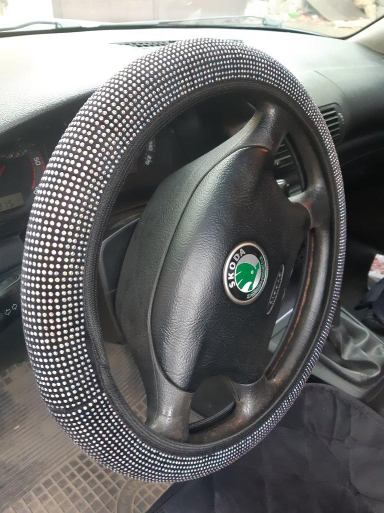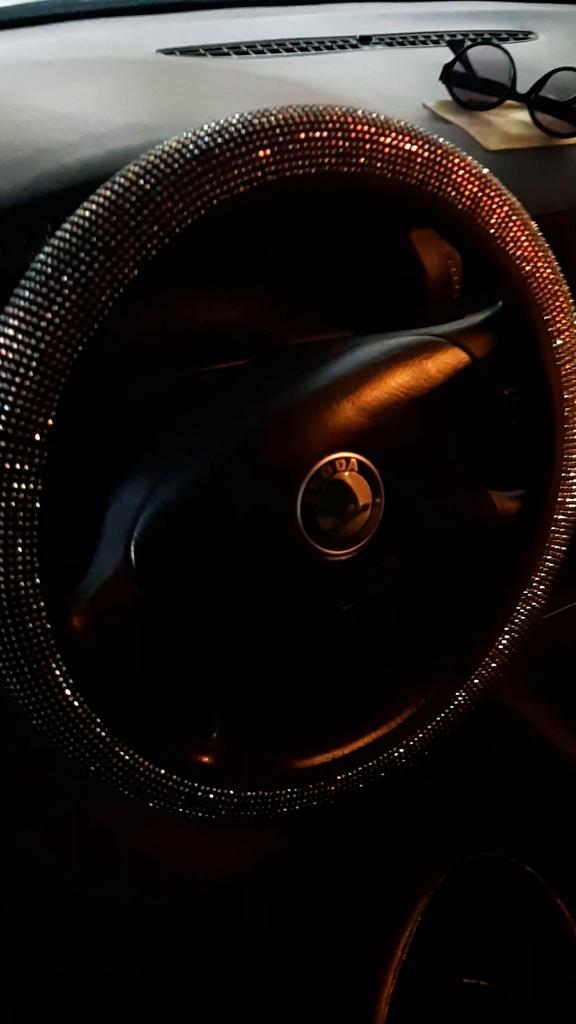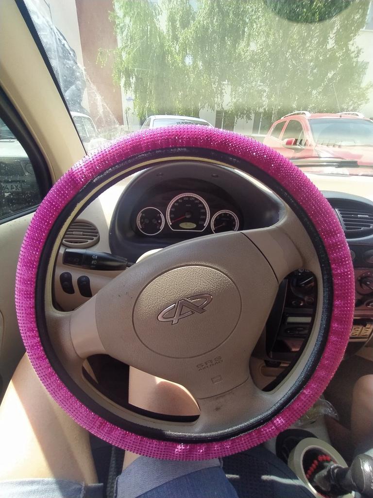 The goods have been received. I ordered 36 diameter. The steering wheel is the same diameter. It runs a little small, I barely put it on. The quality was expected to be better. The stones are small stickers on the fabric. It seems to hold tightly. Not a single one has fallen off yet. It doesn’t sparkle, but now it’s winter, that’s to be expected. Judge for yourself, I posted the photo. .