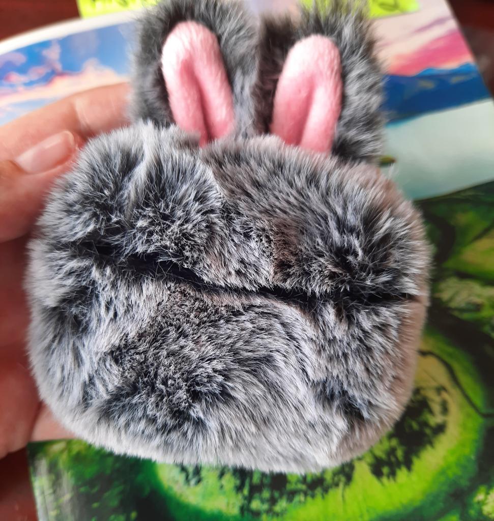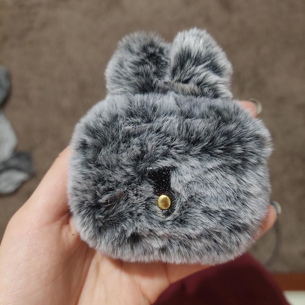 Soft Rabbit Ear Fur Case for AirPods 1 2 Wireless Charging Fluffy Box with Carabiner Plush Cover for Airpods Pro Protector Case