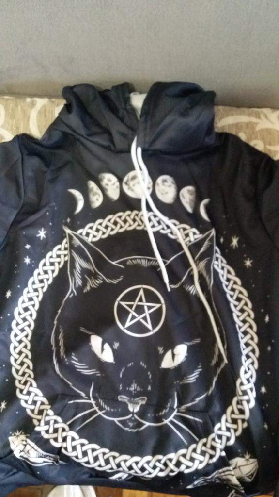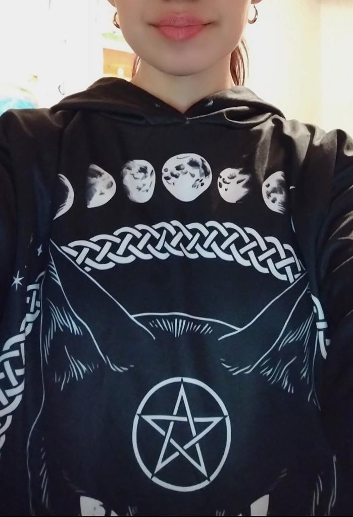 Gothic Harajuku Punk Hoodie Pentagram Print Black Sweatshirts Gothic Streetwear Pullovers Long Sleeve Hooded Outfits