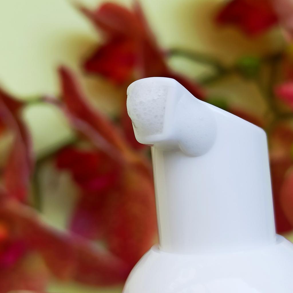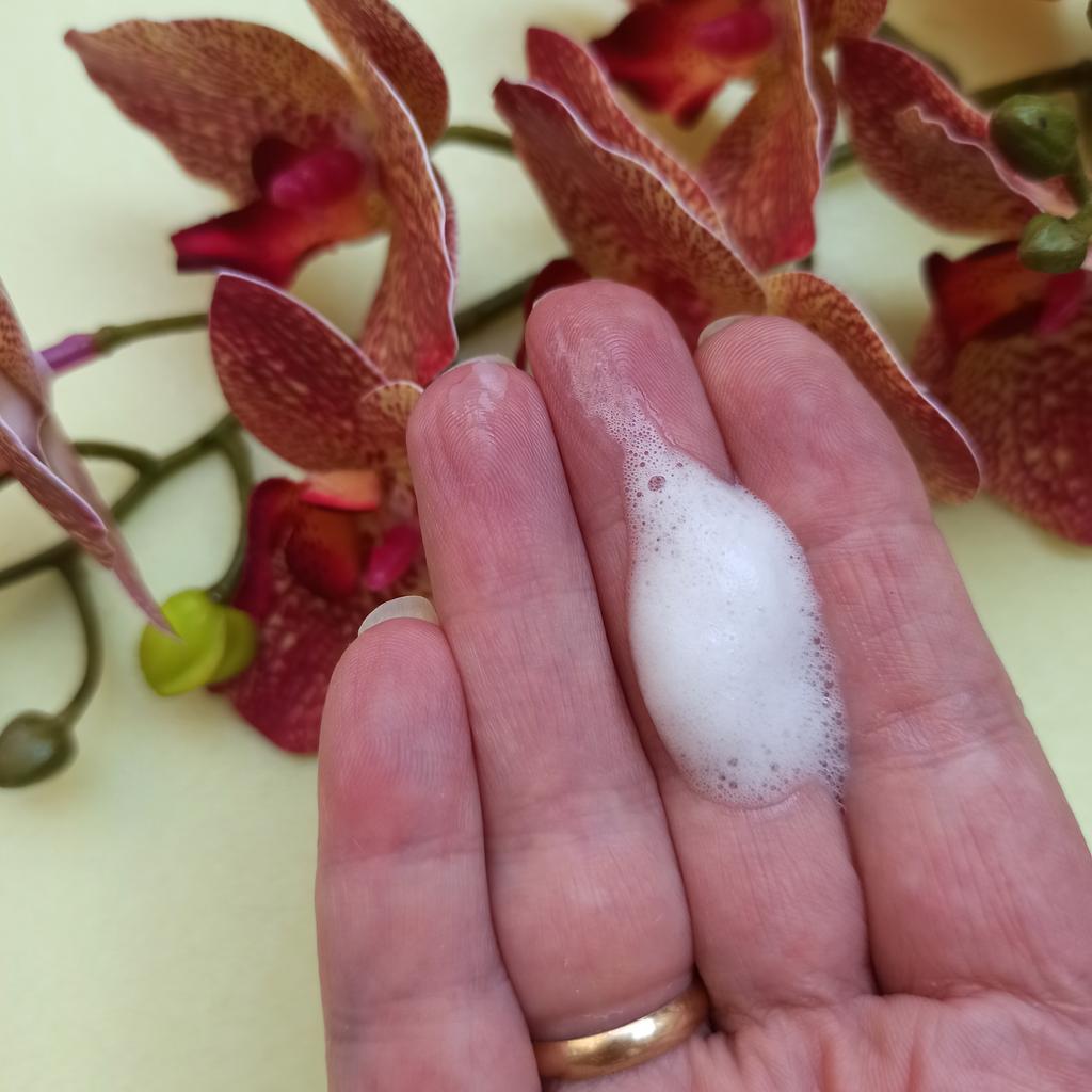 Small size. Soft refreshing mousse for sensitive skin, pleasant light fragrance. Begins to immediately evaporate in the palm of your hand, very airy. Does not cleanse the skin deeply, just refresh.