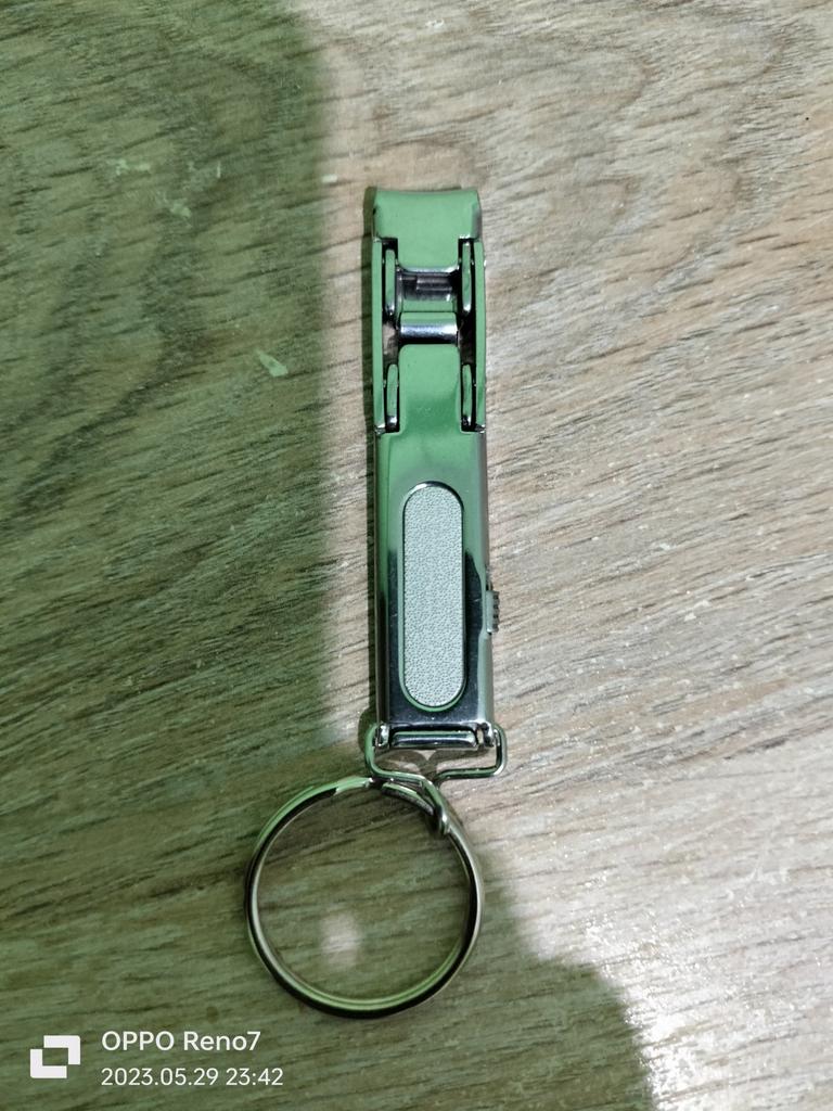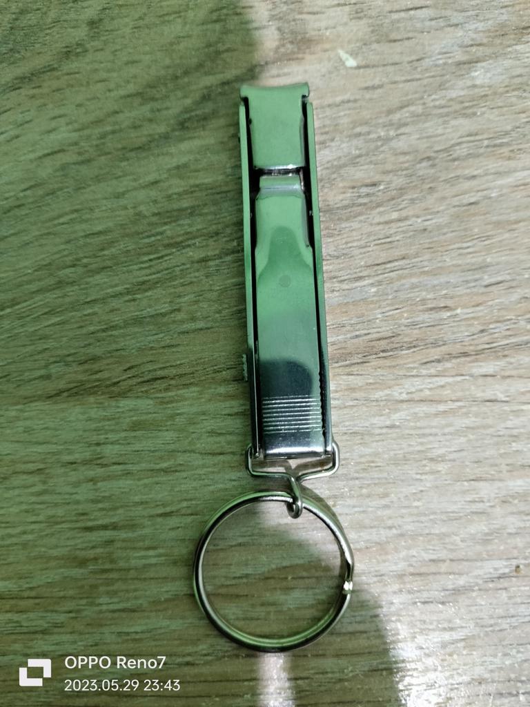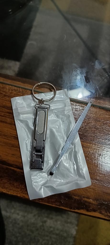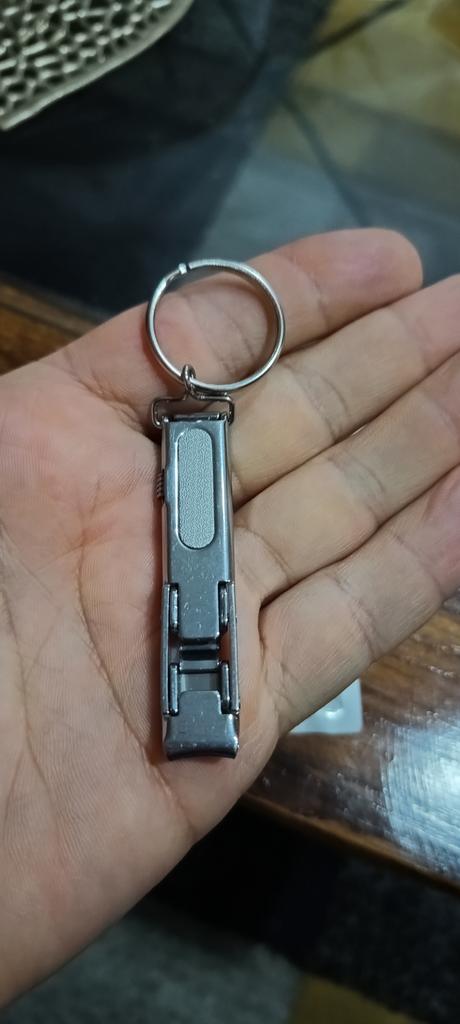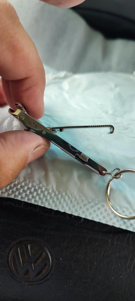I ordered this scissor keychain for my husband, who loses them all every now and then. This one looks nice without looking like what it is, it can be easily attached to the keys and it will definitely not be a problem to lose anymore. The blue part is an adhesive (which must be removed) that covers a piece of file. I recommend!