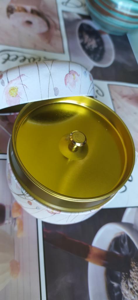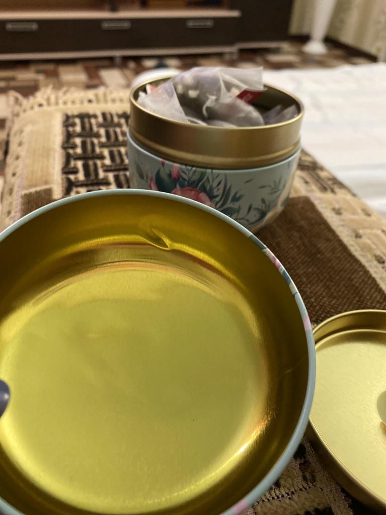 Super beautiful jar, delicious tea inside, more like white, does not knit. The lid is slightly bent, but easily straightened by pressing from the inside.