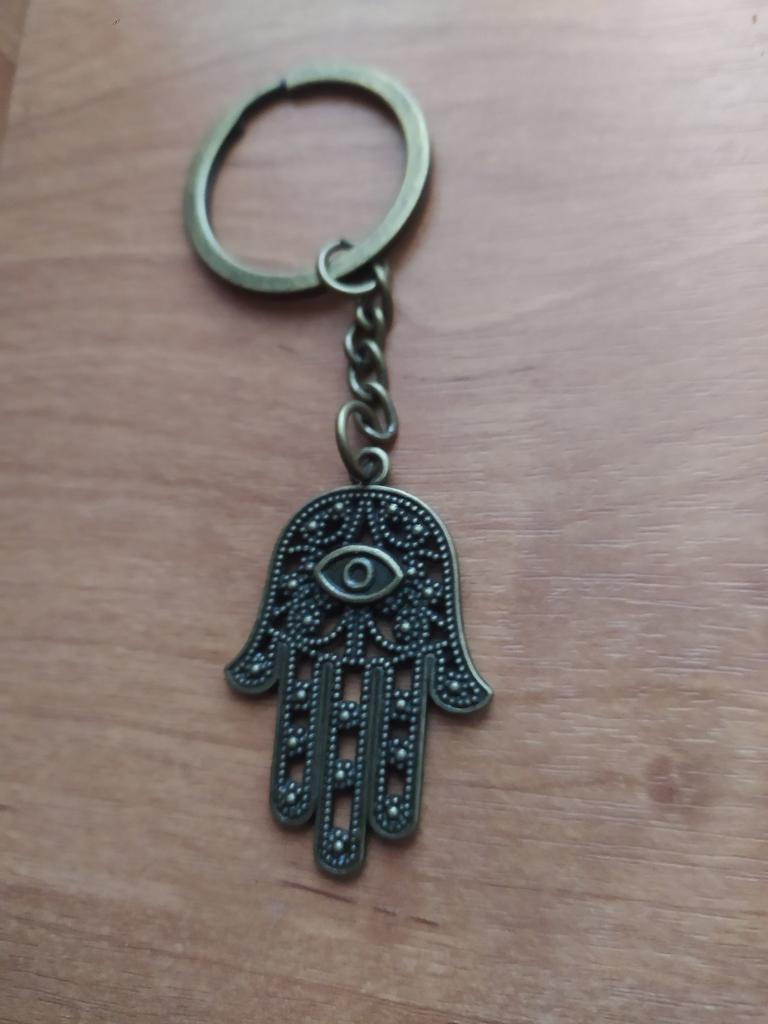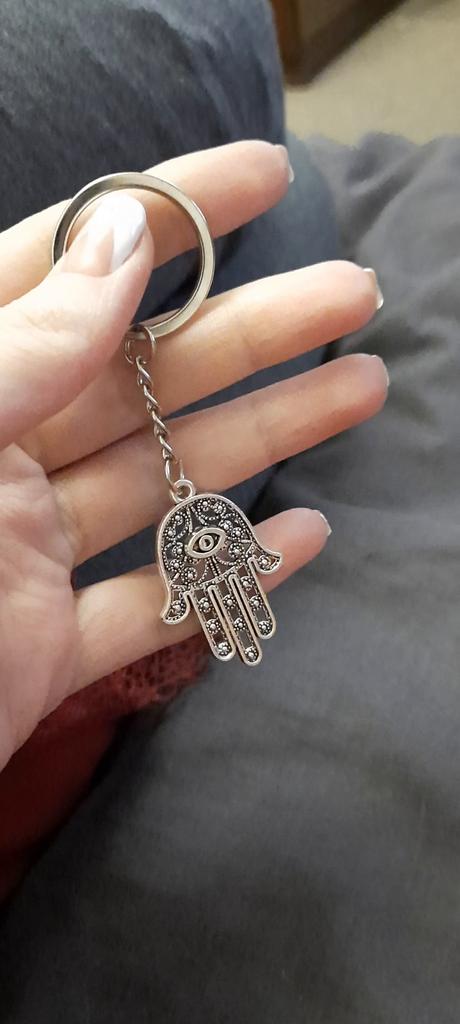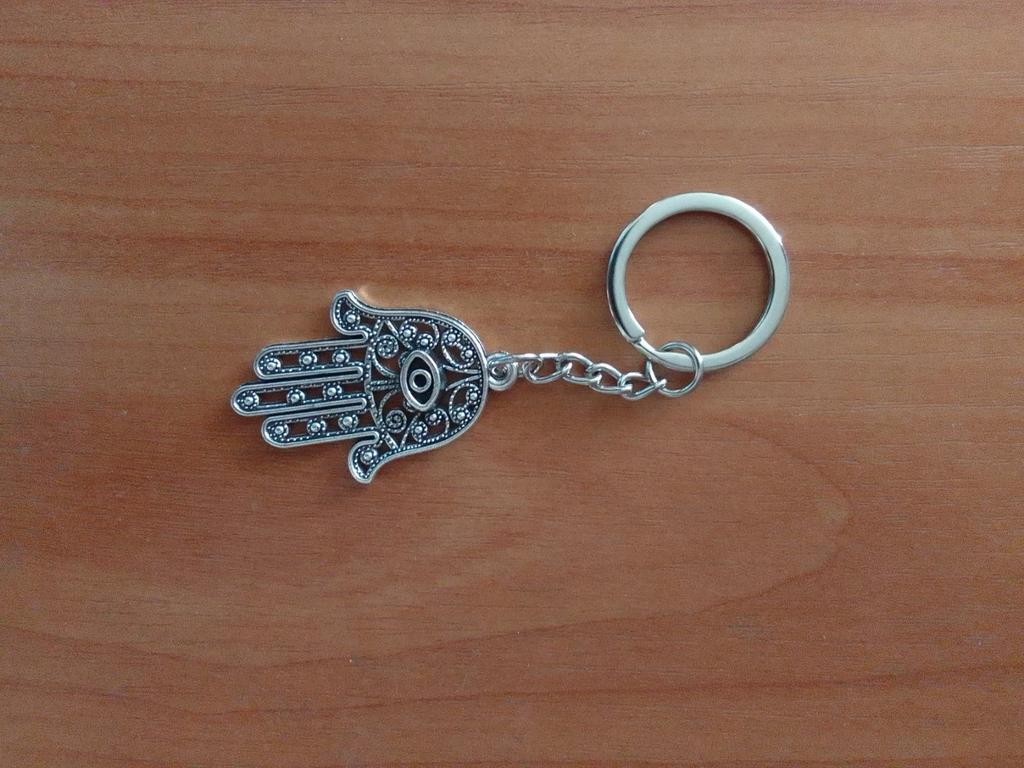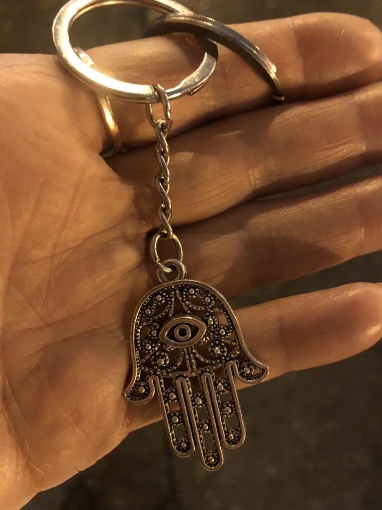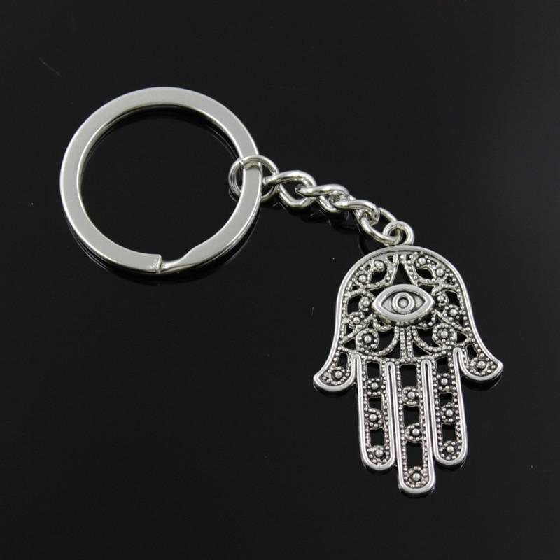 New Fashion Men 30mm Keychain DIY Metal Holder Chain Vintage Death Eye Hamsa Palm Fatima Hand 36x25mm Silver Color Pendant Gift
