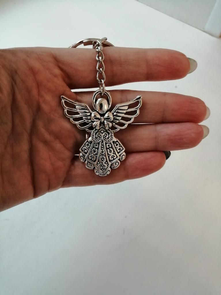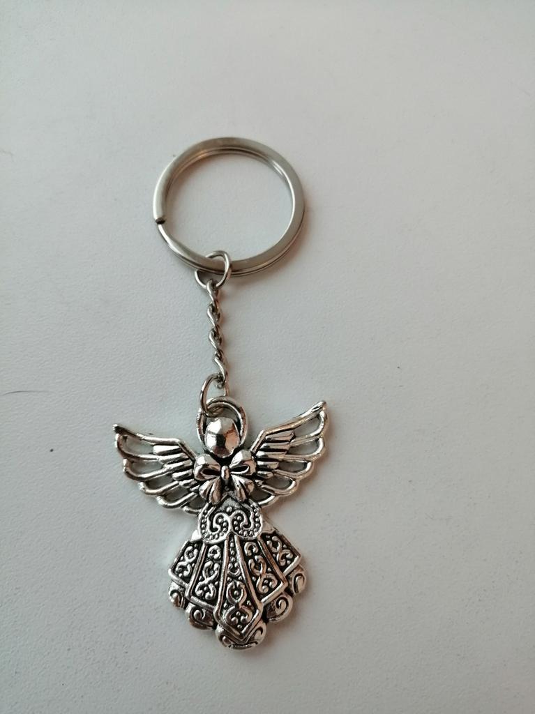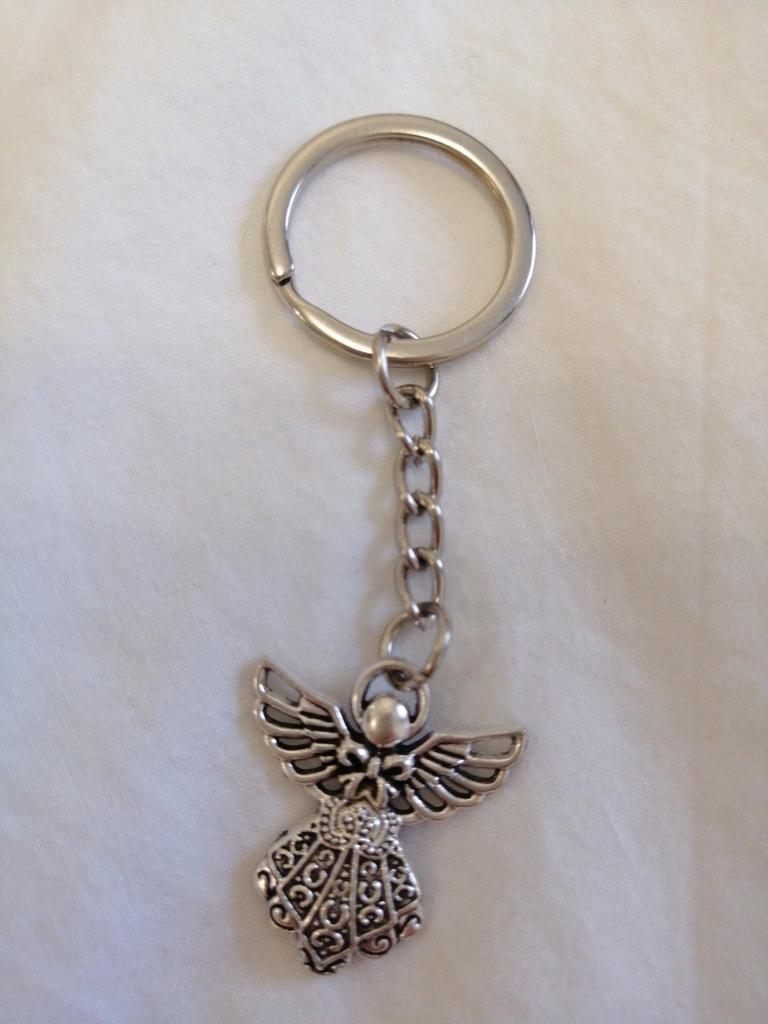 Fashion Guardian Angel 42x38mm Pendant 30mm Key Ring Metal Chain Silver Color Men Car Gift Souvenirs Keychain