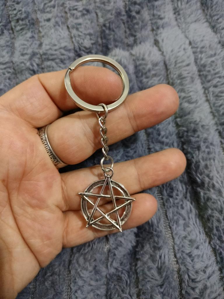 Fashion 30mm Key Ring Metal Key Chain Keychain Jewelry Antique Silver Color Plated Star Pentagram 31x27mm Pendant