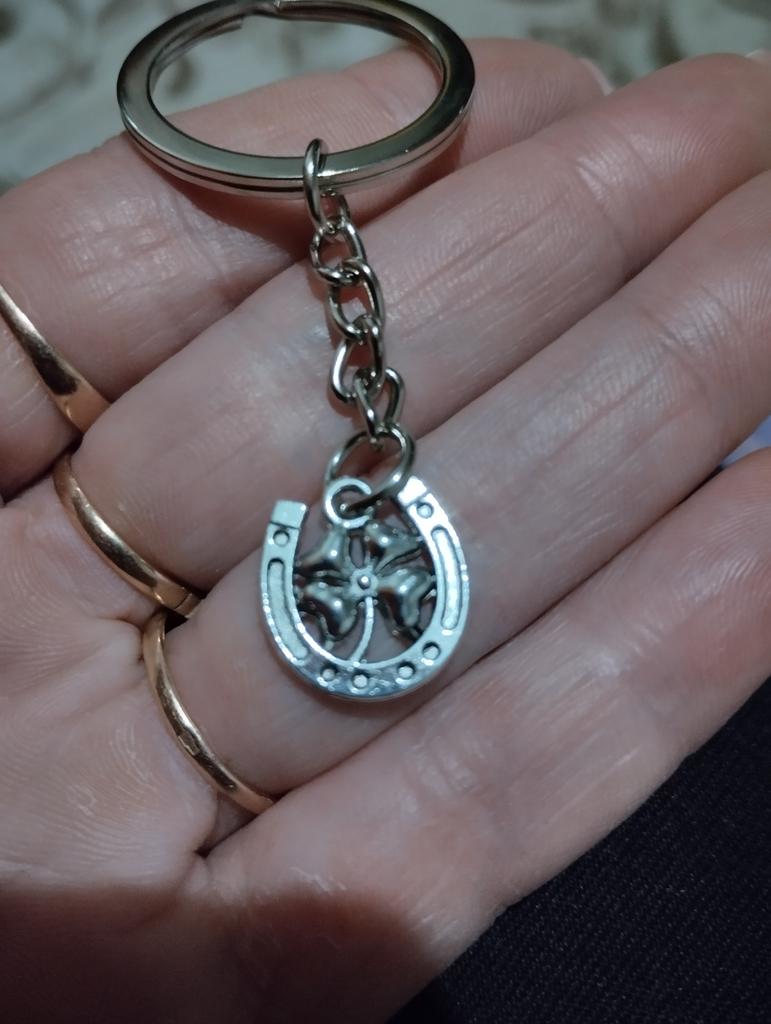 Small neat horseshoes with a four-leaf clover. But the ring is very big. For me, this is a disadvantage. The workmanship is good.