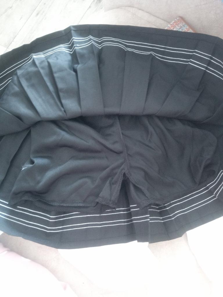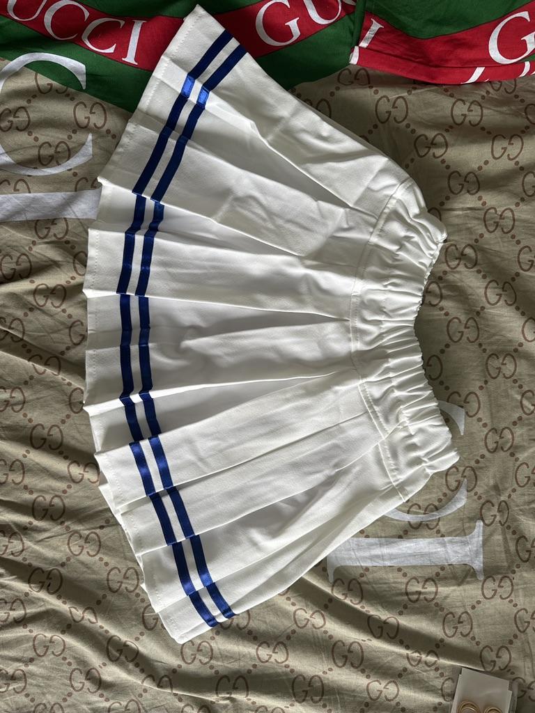 Nice tight skirt! There are protective shorts inside but unfortunately they are translucent 🤦🏻♀️ Just a little. White with bright blue stripe looks very nice 🥹👍🏻
